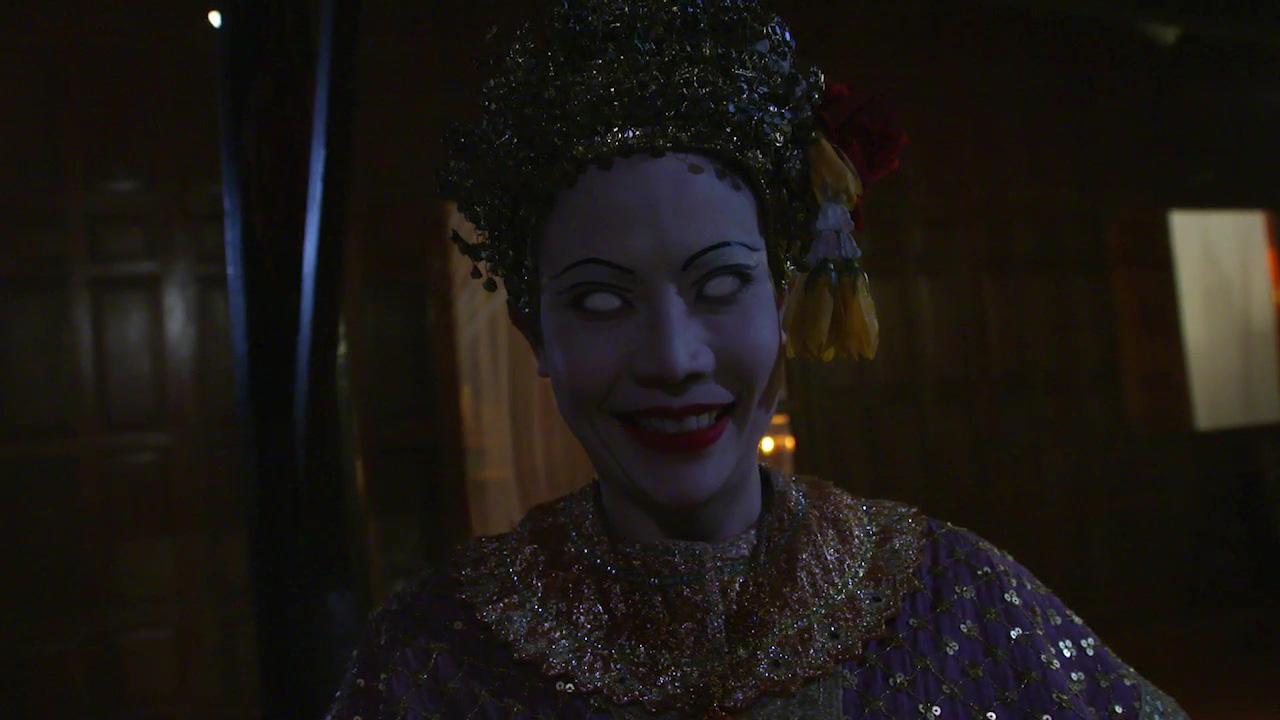เป็นฉากที่ ชฎาพร (จั๊กจั่น) ฝันร้าย เมื่อในฝันได้สวมใส่ชุดนางรำและถูกฟ้าผ่าจนหัวและตัวขาดจากกัน หลังจากตื่นมากลับได้ยินเสียงลึกลับจากเครื่องดนตรีไทยเริ่มต้นบรรเลงขับขาน สลับเสียงฝีเท้าและเสียงหัวเราะ ในห้องเรือนชฎานาง จึงเดินตามเสียงหลอน ไปด้วยความสงสัย ทันใดนั้นภาพที่เห็นทำให้ ชฎาพร ควบคุมสติตัวเองไม่ไหว คือเห็นภาพ ผีนางรำที่คอยๆ พุ่งตัวมาหาในระยะประชิด หักตัวโค้งงอ