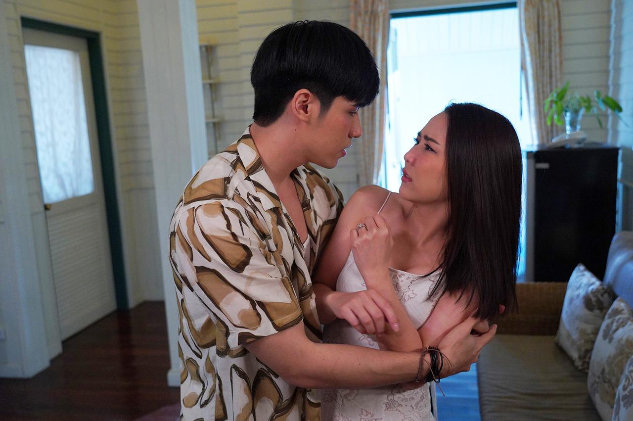 เบื้องหลังฉากนี้ เพราะเป็นฉากเลิฟซีนที่มีอารมณ์ค่อนข้างซับซ้อนหลายระดับ งานหนักเลยตกอยู่ที่สาวจั๊กจั่น เมื่อต้องอยู่ในโหมดอารมณ์ของความเมาสลับกับความเศร้า แถมยังต้องโดนจูบอีกด้วย แต่งานนี้หนุ่มภูมิก็ต้องใช้สมาธิหนักมากไม่แพ้กันกับการวนมาเจอจั๊กจั่นอีกครั้ง หลังเคยเจอในละครเรื่องแรกตอนเข้าวงการใหม่ๆ แต่ครั้งนี้ต้องมาในเวอร์ชันที่หนุ่มภูมิแอบรัก และยั่วเบาๆ ส่งสายตาออดอ้อนพร้อมใช้มือลูบไล้ใบหน้าจั๊กจั่น บิลต์ด้วยความร้อนแรง ทำเอาภูมิแอบเกร็งไม่น้อย ด้านนิวเองที่ต้องเป็นตัวสับขาหลอก มาสแตนด์บายจูบจั๊กจั่นก็คอยดูแอคของภูมิเอาไว้ เพราะต้องเล่นให้เนียนเหมือนเป็นคนคนเดียวกัน เพราะในเรื่องจั๊กจั่นต้องเคลิ้มเห็นภูมิเป็นนิว