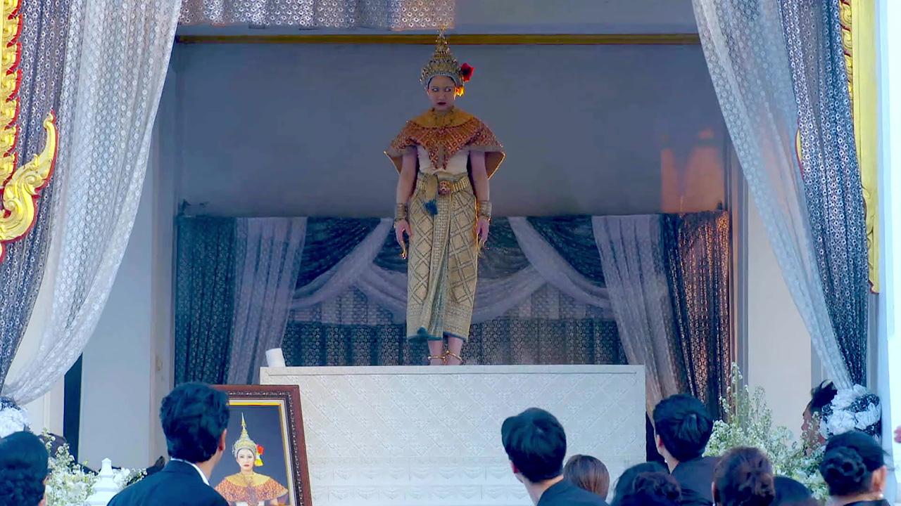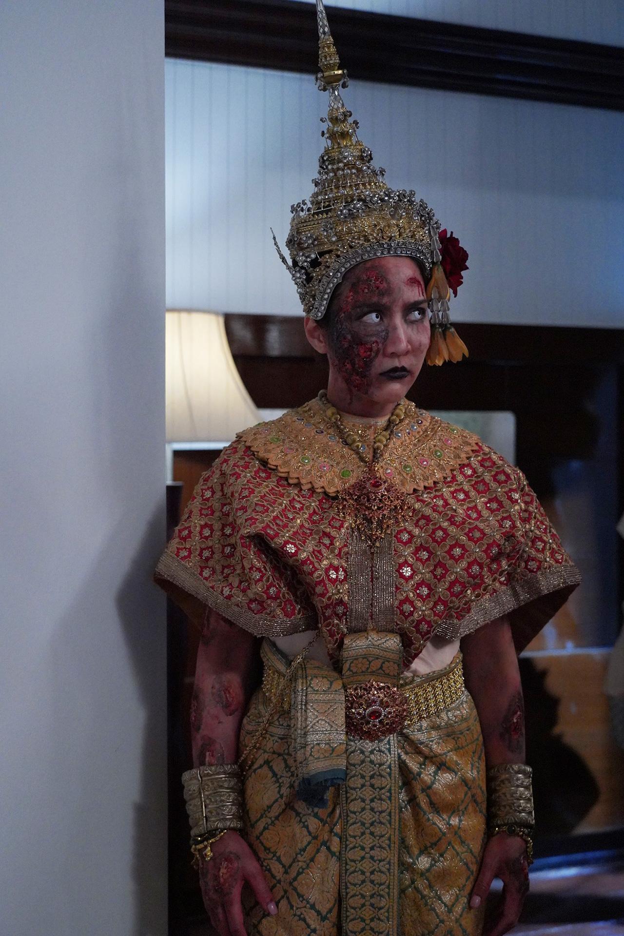 ขั้นตอนที่ 4 ความหลอนที่ค่อยๆอัพเลเวลความน่ากลัวขึ้นเรื่อยๆ ด้วยการสวมชฎา ใส่ชุดนางรำ ทาหน้าขาว ใส่เล็บยาวที่ปลุกความหลอนได้ดีสุดๆ ซึ่งเป็นขั้นตอนที่ต้องใช้การพิถีพิถันละเมียดละไมที่ด้วยการเย็บเสื้อผ้าต่างๆ เข้าด้วยกัน จะใช้เวลาในการใส่และถอดแต่ละครั้งที่นานพอสมควร