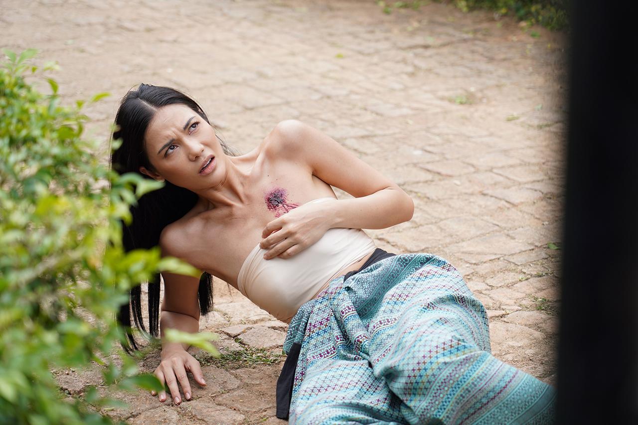 เบื้องหลังฉากนี้ เป็นซีนอารมณ์ของผู้หญิงสองคนทั้ง น้ำตาล และ ฝ้าย ที่ต่างไม่ยอมกันสุดๆ ซักซ้อมคิวอย่างละเอียด ต่างออกตัวว่าไม่เคยทำอะไรแบบนี้จึงค่อนข้างเกร็ง และอีกหนึ่งความเกร็งนั่นก็คือความสูงของเสลี่ยง ที่ทั้งคู่ต้องขึ้นไปยืนแล้วซัดกันนัว ตบกันบนนั้น งานนี้บอกเลยว่ามีเสียววาบ แต่ทั้ง ฝ้าย และ น้ำตาล ก็สั่นสู้ เพราะถึงจะกลัวความสูงกัน แต่พอองค์แม่การแสดงลง ก็ใส่กันไม่ยั้ง จนลืมกลัวความสูงไปเลย