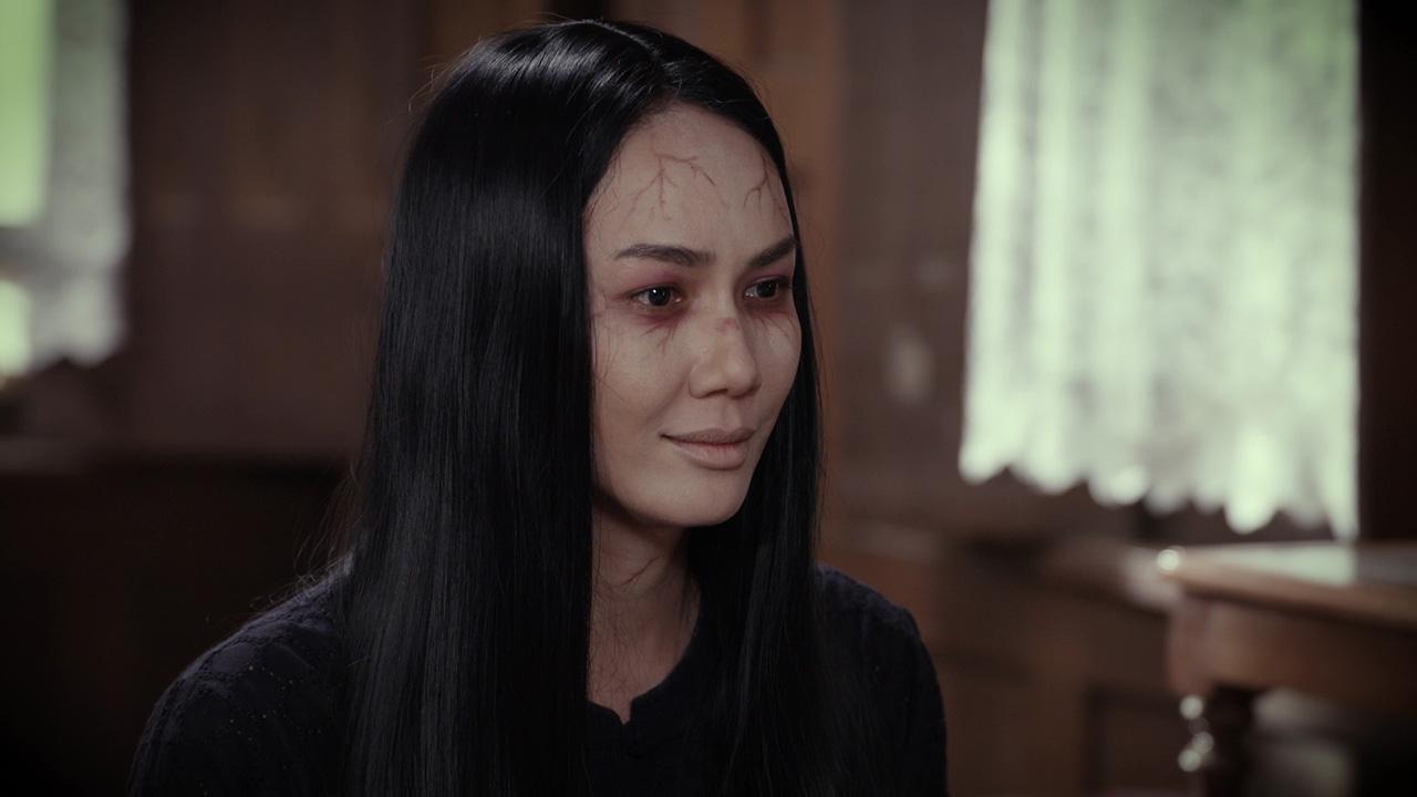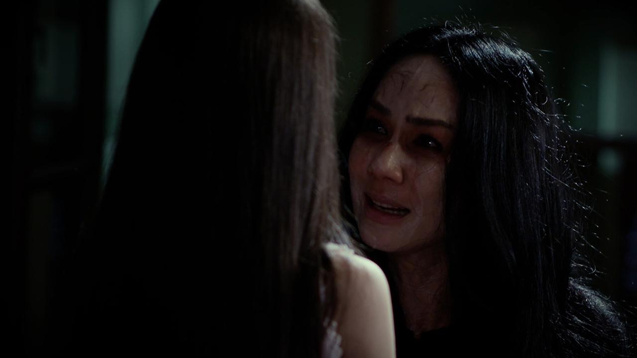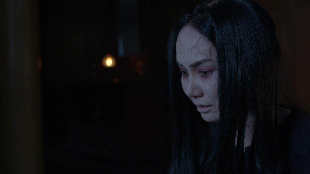 เป็นฉากที่ ฟองจันทร์(เข็ม) ตาย เหตุจากเลี้ยงผีกะเอิ้งโหลง(น้ำตาล)ไม่ดี แต่จิตยังอาฆาต และเป็นห่วงอาลัยรัก ฝ้ายคำ(เฌอเบลล์) ที่ต้องอยู่รายล้อมคนเลว ฟองจันทร์พร้อมปกป้องดูแลอยู่ไม่ห่าง ฝ้ายคำจึงยินยอมเลี้ยงผีแม่เอาไว้ โดยไม่ให้ใครรู้ ทั้งเซ่นขอบคุณผีแม่ด้วยไข่สด เลือดสด และบทสวดเรียกผีกะเพื่อบูชาให้ผีกะฟองจันทร์มาเลียกินของเซ่น แต่สิ่งที่ร้ายไปกว่านั้น คือฟองจันทร์ ถูกวิญญาณเอิ้งโหลงดึงเข้ามา หลอมรวมกลายเป็นหนึ่งเดียว เพื่อทำสิ่งที่ผิด