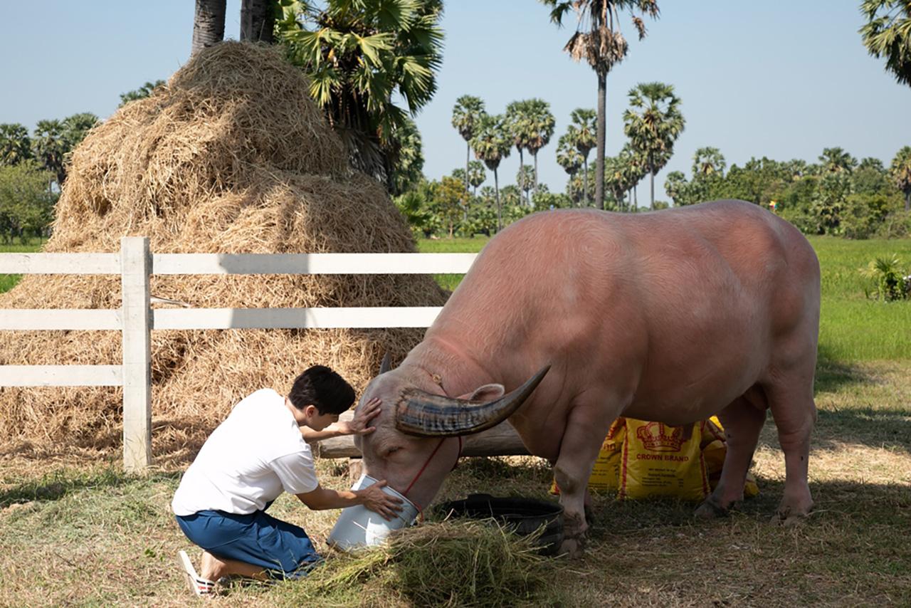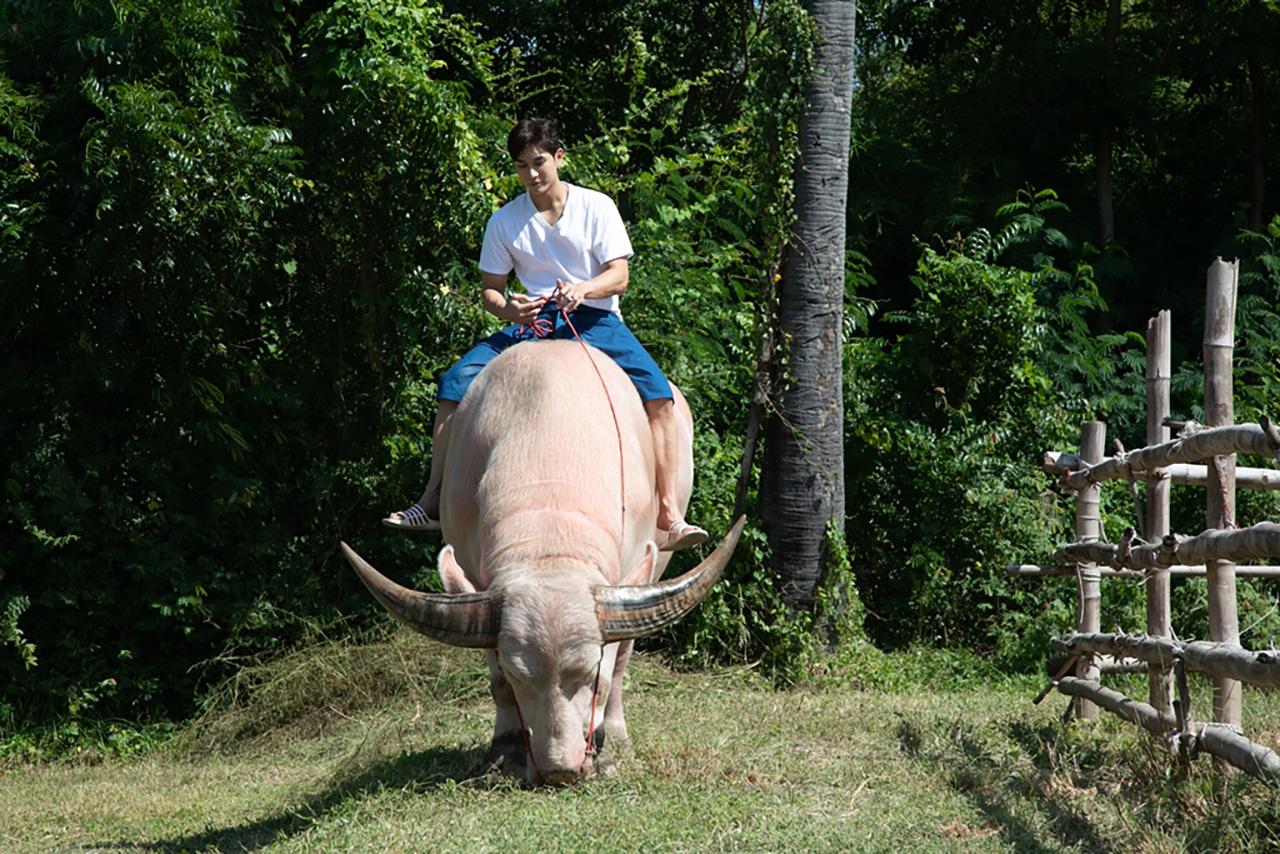 ฉากนี้ผู้กำกับฯ คนเก่ง สำรวย รักชาติ และทีมงาน ใช้คอกควาย แถวจ.เพชรบุรี เป็นสถานที่ถ่ายทำ ซึ่ง ควายเผือก ที่นำมาเข้าฉากและแสดงเป็น “เจ้าโก้” คือ ควายเผือกที่ถือได้ว่าดังที่สุดของประเทศ โดยก่อนถ่ายทำผู้กำกับฯ ขอทำความคุ้นเคยกับ เจ้าโก้ ซะก่อน จากนั้นก็เรียกให้นักแสดงอย่าง ทัช ณ ตะกั่วทุ่ง และ มิว ศุภศิษฏ์ มาทำความคุ้นเคยกับ เจ้าโก้ ด้วย ซึ่ง เจ้าโก้ ก็ให้ความร่วมมือเป็นอย่างดี โดย หนุ่มมิว เห็น เจ้าโก้ ครั้งแรกก็ร้อง “โอ้โห...ตัวใหญ่มาก”