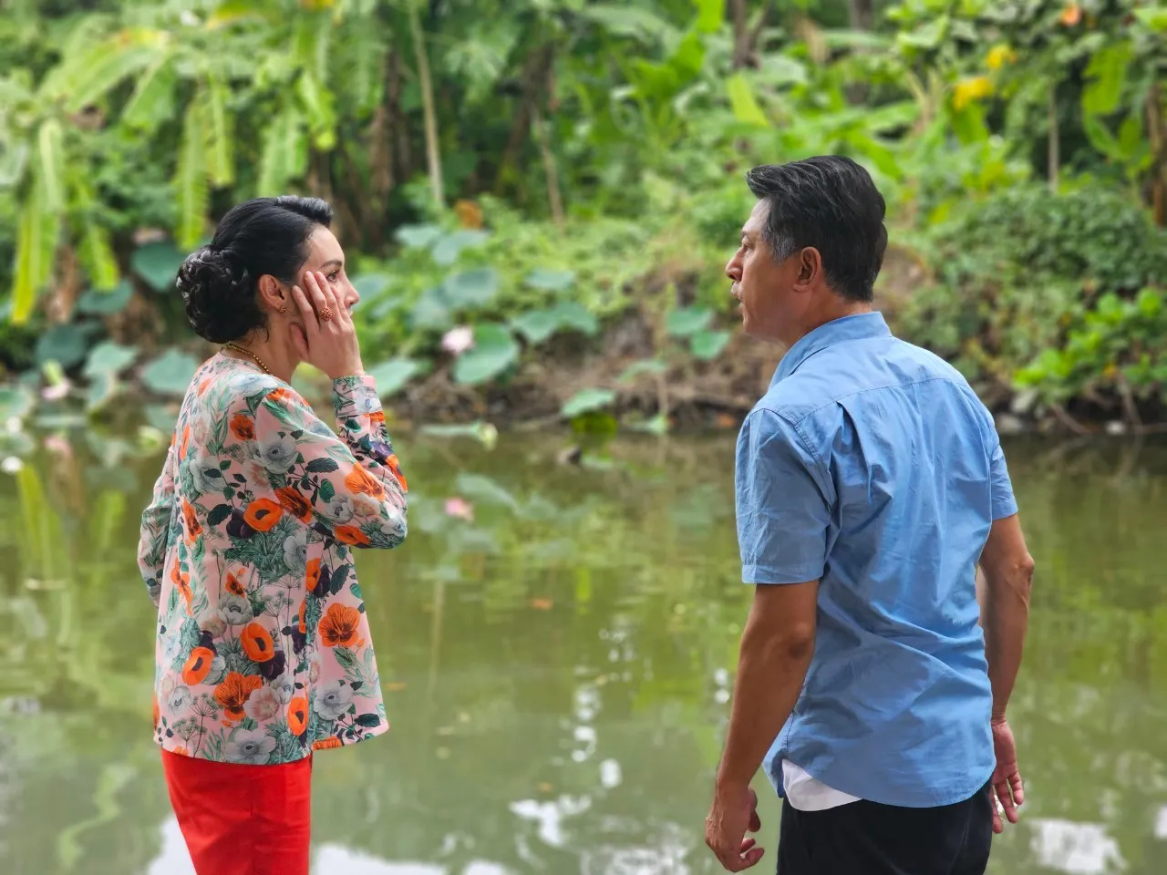 เอ๋ กษมา ขอซ้อมคิวนักแสดงทั้งสองคน เมฆ และ ษา เพื่อทำความเข้าใจกับฉากนี้เสียก่อน เมื่อทุกอย่างพร้อม ผู้กำกับฯ ก็สั่งเคลื่อนกล้อง โดย เมฆ เดินเข้าไปที่ท่าน้ำก่อน สาวษา ก็เดินตาม ทั้งคู่ต่อไดอะล็อกกันไปมา จนถึงคิวสำคัญ สาวษา หยิบไม้มาฟาดหัว แล้ว หนุ่มเมฆ ก็ล้มตัวลงไปในน้ำ พอผู้กำกับฯ สั่งคัต หนุ่มเมฆ ก็ว่ายน้ำขึ้นมาบนฝั่ง โดยมีทีมงานเตรียมรอรับและดูแลเป็นอย่างดี