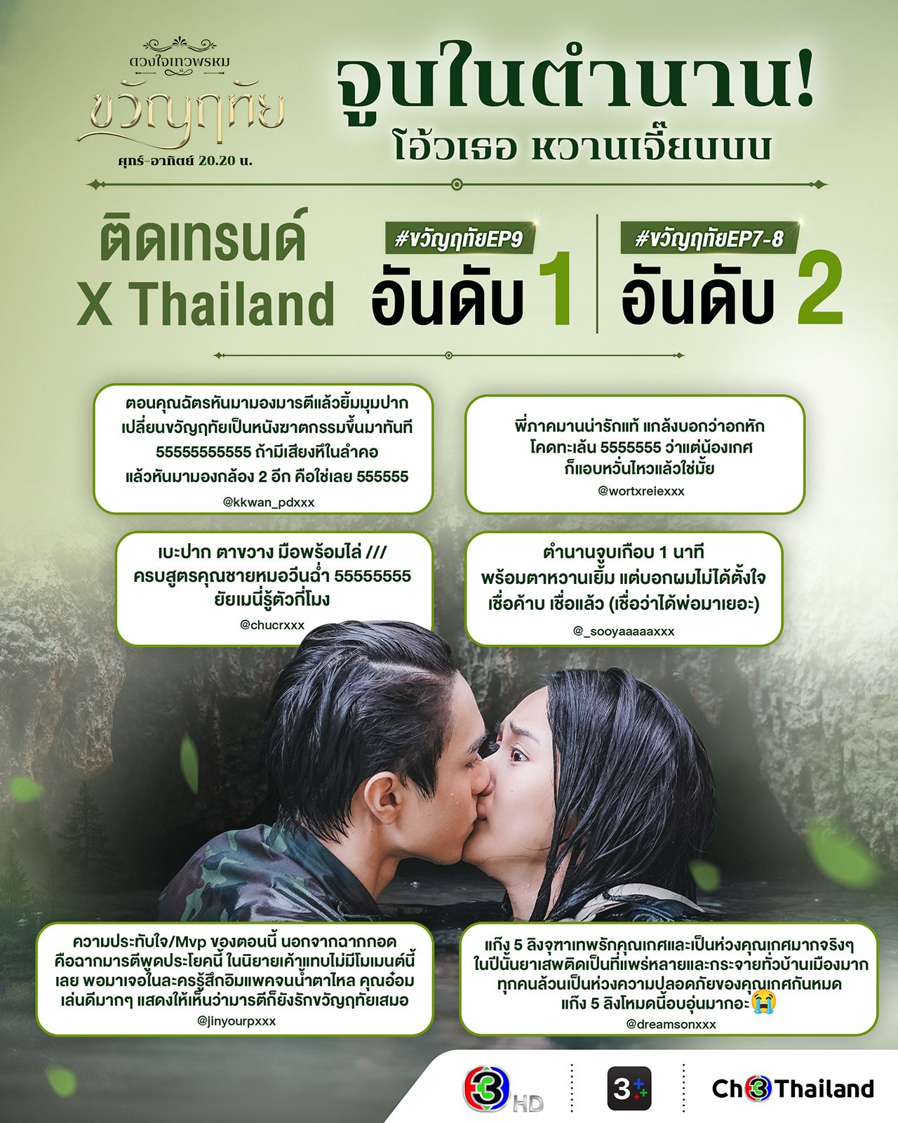 ติดงอมแงมไปทั่วบ้านทั่วเมืองแล้วตอนนี้ สำหรับละครชุด “ดวงใจเทวพรหม” เรื่อง “ขวัญฤทัย” ทางช่อง 3 ที่ไม่มีใครไม่รู้จัก ล่าสุดตีเรตติ้งสั่นสะเทือนไปทั้งแผ่นดินไปกับฉากจูบในตำนานที่หลายคนรอคอยของคู่ คุณฉัตร (ไมกี้ ปณิธาน) และ ขวัญฤทัย (ญดา นริลญา) ทำคนดูอินหนักถูกใจจนดันขึ้นแท่นละครน้ำดีจนพุ่งติดเทรนด์ X ประเทศไทย ไปกับแฮชแท็ก #ขวัญฤทัยEP9 อันดับ 1 และ #ขวัญฤทัยEP7-8 อันดับ 2 ด้านดูสดออนไลน์ก็เรียกยอดไปได้สูงถึง 3.4 แสนคน กลายเป็นละครที่คนดูหลายคนต้องนั่งเฝ้าหน้าจอรอให้ถึงวันหยุดสุดสัปดาห์กันเลยทีเดียว