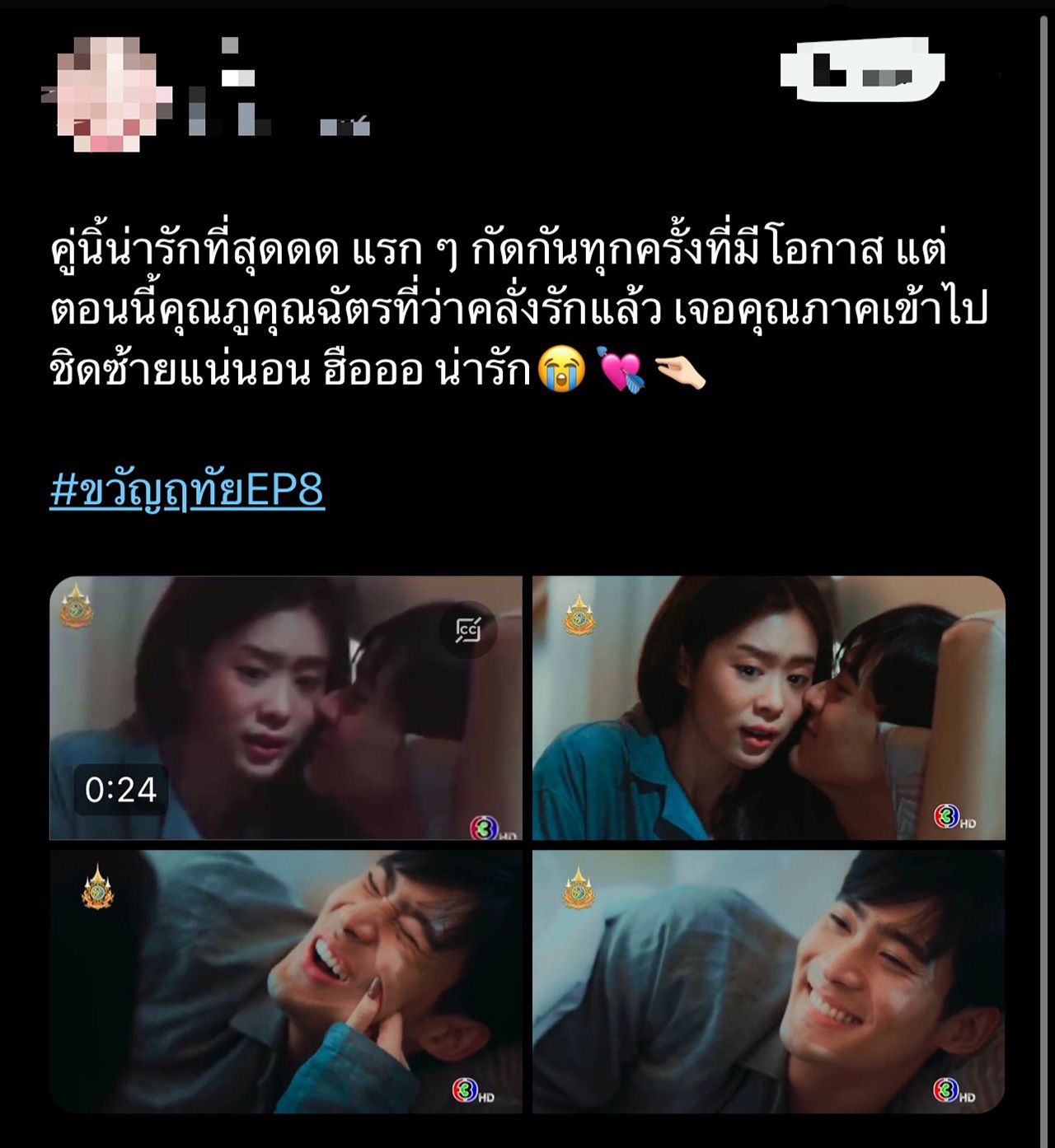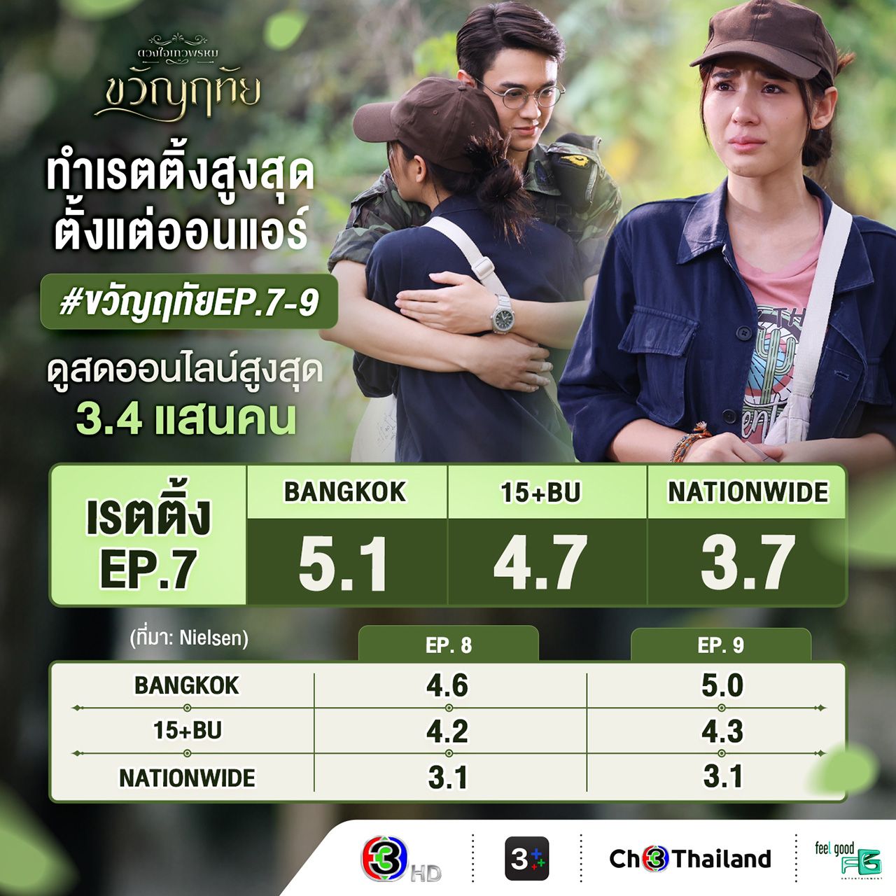 กวาดเรตติ้งฉ่ำทุกพื้นที่ทุบสถิติ New High อีพี 7 ในกลุ่มผู้ชมกรุงเทพฯ ทำไปได้ถึง 5.1 กลุ่ม 15 BU+ (Bangkok and Urban) ทุบไปที่ 4.7 และ รวมทั่วประเทศคว้าไปได้ถึง 3.7 อีพี 8 ในกลุ่มผู้ชมกรุงเทพฯ ทำไปได้ถึง 4.6 กลุ่ม 15 BU+ (Bangkok and Urban) ทุบไปที่ 4.2 สำหรับ อีพี 9 ทุบเรตติ้งในกลุ่มผู้ชมกรุงเทพฯ ทำไปได้ถึง 5.0 กลุ่ม 15 BU+ (Bangkok and Urban) ทำไปได้ถึง 4.3 เรียกว่าเป็นสัปดาห์ที่เสิร์ฟความฟินให้คนดูได้จิ้นจิกหมอนแตกไปตามๆ กัน ระหว่างความสัมพันธ์ของ คุณฉัตร (ไมกี้ ปณิธาน) และ ขวัญฤทัย (ญดา นริลญา) ที่หลายคนตามเอาใจช่วยจนทั้งคู่เลิกปากแข็ง ถึงเวลาเปิดใจสารภาพรัก เข้าโหมดฟรุ้งฟริ้งสมใจคนดู และอีกหนึ่งคู่ที่ความสัมพันธ์เดินหน้าชวนแก้มแตกกับ ปกเกศ (แบม สราลี) และ ภาครัช (จูเนียร์ กาจบัณฑิต) ที่หลายคนพูดถึงและยกให้เป็นคู่ปรับศีลเสมอไม่เกินจริง และยังชื่นชมฝีมือการแสดงของ แม่มณี (อ๋อม สกาวใจ) สมแล้วที่เป็นนางร้ายตัวแม่ นับวันความสนุกยิ่งทวีคูณเพิ่มขึ้นเรื่อยๆ