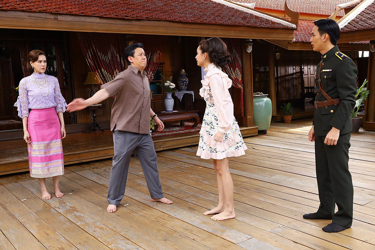 ฉากนี้เป็นตอนที่ เภา (บิ๊กเอ็ม-สุเมธา) พาแก้ว (อ๋อม-ปัณชญา) มาฟ้อง พระยาวิสุทธิ์ (ฟลุค-เกริกพล) ว่าหนูยิ้ม (ปิ่น-ชรินพร) จ้างคนไปฉุดแก้ว หนูยิ้มปฏิเสธ รุ้ง (เบนซ์-ชนกนันท์) ยืนยันว่าหนูยิ้มเป็นคนสั่งให้เธอไปจ้างชายฉกรรจ์มาจริงๆ พระยาวิสุทธิ์ลงหวายฟาดหนูยิ้ม คุณหญิงระย้า (เจี๊ยบ-พิจิตตรา) ห้าม แต่หนูยิ้มบอกว่าไม่ต้องห้ามอยากตีให้เขาตีหนูให้ตายเลย