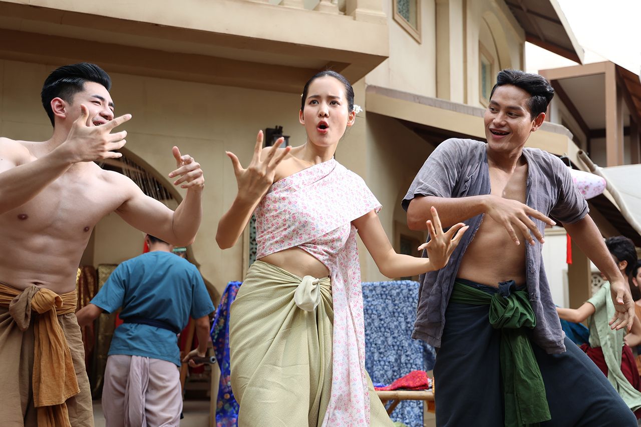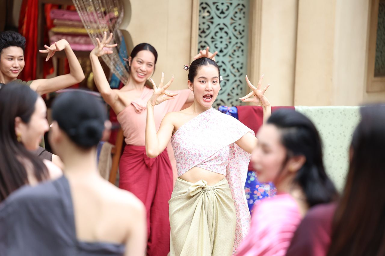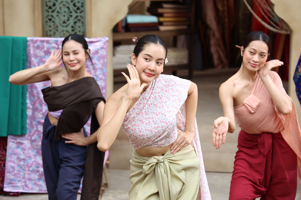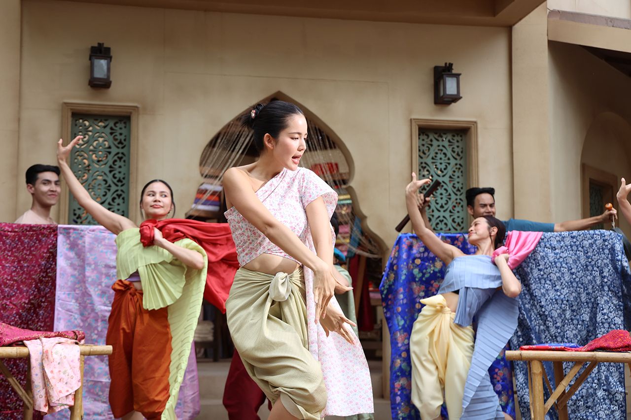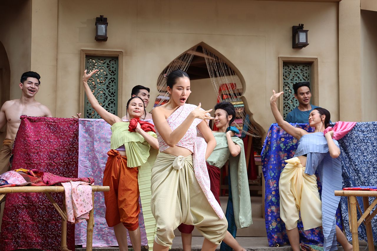 บื้องหลังบอกเลยว่าชีโบว์สู้ไม่ถอยจริง ๆ เพราะนอกจากจะต้องจำบล็อกกิ้ง และท่าเต้นที่ต้องร้องไปเต้นไป ขายผ้าไป ไหนจะต้องจำสีผ้าแต่ละสีที่ไม่เคยได้ยินมาก่อนไม่ว่าจะเป็น “สีมอคราม” , “สีน้ำหมาก” , “สีเขียวดิน” , “สีเหลืองจำปา” ฯลฯ เท่านั้นไม่พอยังมีช่วงที่โบว์ต้องถูกยกตัวให้ลอยพร้อมกับร้องไปด้วยก็ยิ่งไม่ธรรมดา เรียกว่ากว่าจะถ่ายเสร็จสาวโบว์ถึงกับหมดแรง แต่บอกได้เลยว่าฉากนี้ชีโบว์สร้างตำนานอีกแน่นอน