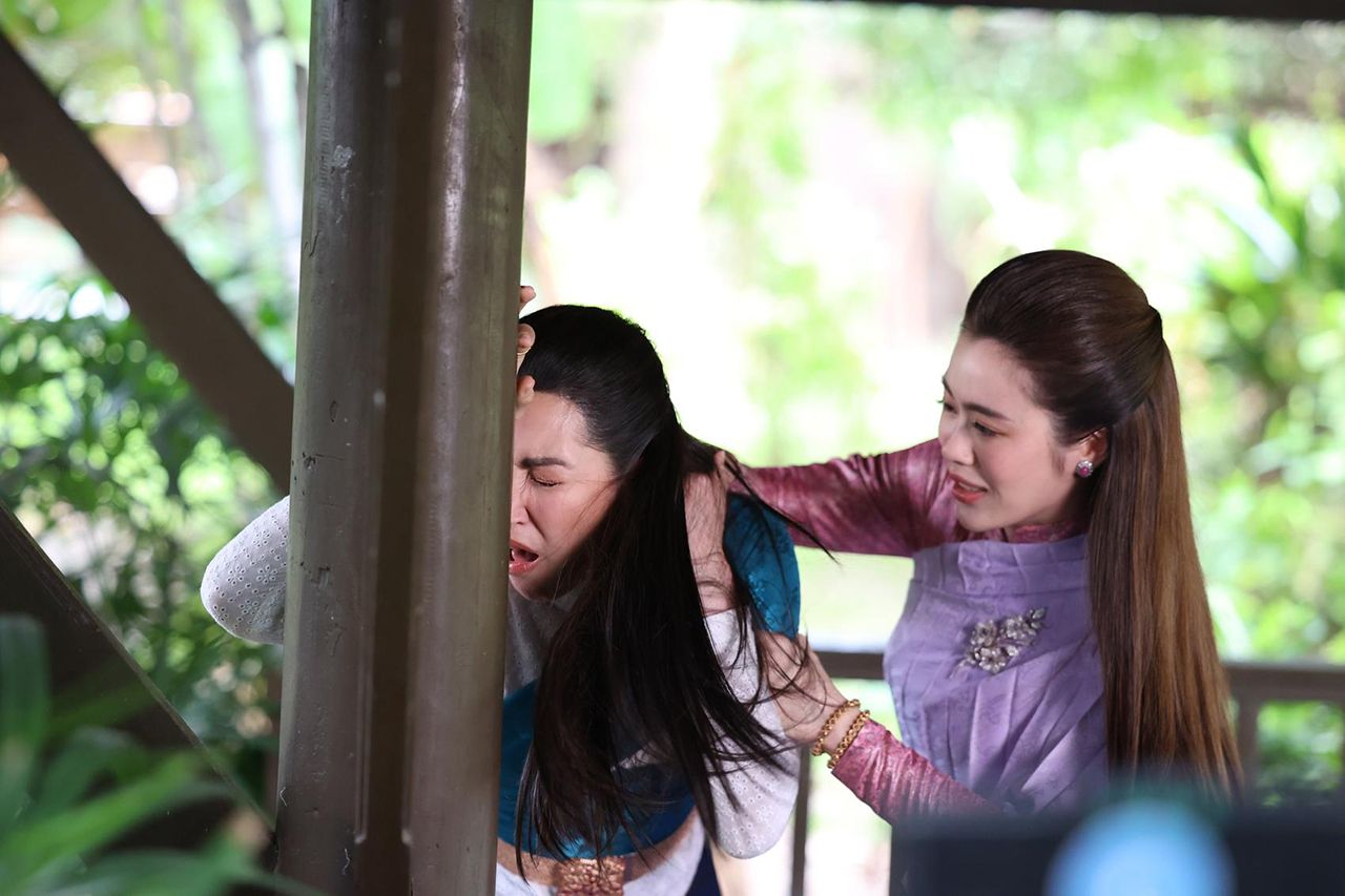 งานนี้แบมสารภาพว่าเครียดหนักสุดๆ เพราะเข้าฉากวันแรกก็ต้องเล่นซีนใหญ่ ทั้งด่า จิกหัว ตบ และถึงขั้นจับหัวเบลล่าโขกเสา ท่ามกลางสายตาของเจมส์ และทีมงานเต็มเซ็ท แต่โชคดีที่ได้ทั้งผู้กำกับฯ วิทย์ วรวิทย์ คอยกำกับอย่างละเอียด และพี่ ๆ ร่วมงานยังช่วยให้กำลังใจ โดยเฉพาะเบลล่าที่แอบกระซิบสอนเทคนิคการเล่นซีนตบจริงให้สมจริงแต่ไม่เจ็บ เบื้องหลังเต็มไปด้วยรอยยิ้ม เพราะเจมส์และเบลล่าคอยพูดคุยคลายเครียดให้น้องใหม่ตลอดเวลา ก่อนที่ฉากเปิดตัว “ยี่สุ่น” จะเสร็จสิ้นอย่างสมบูรณ์ ซึ่งแบมฝากบอกแฟนละครว่า “อยากให้ทุกคนเป็นกำลังใจ และลองติดตามดูว่ายี่สุ่นจะร้ายจริงหรือเปล่า”