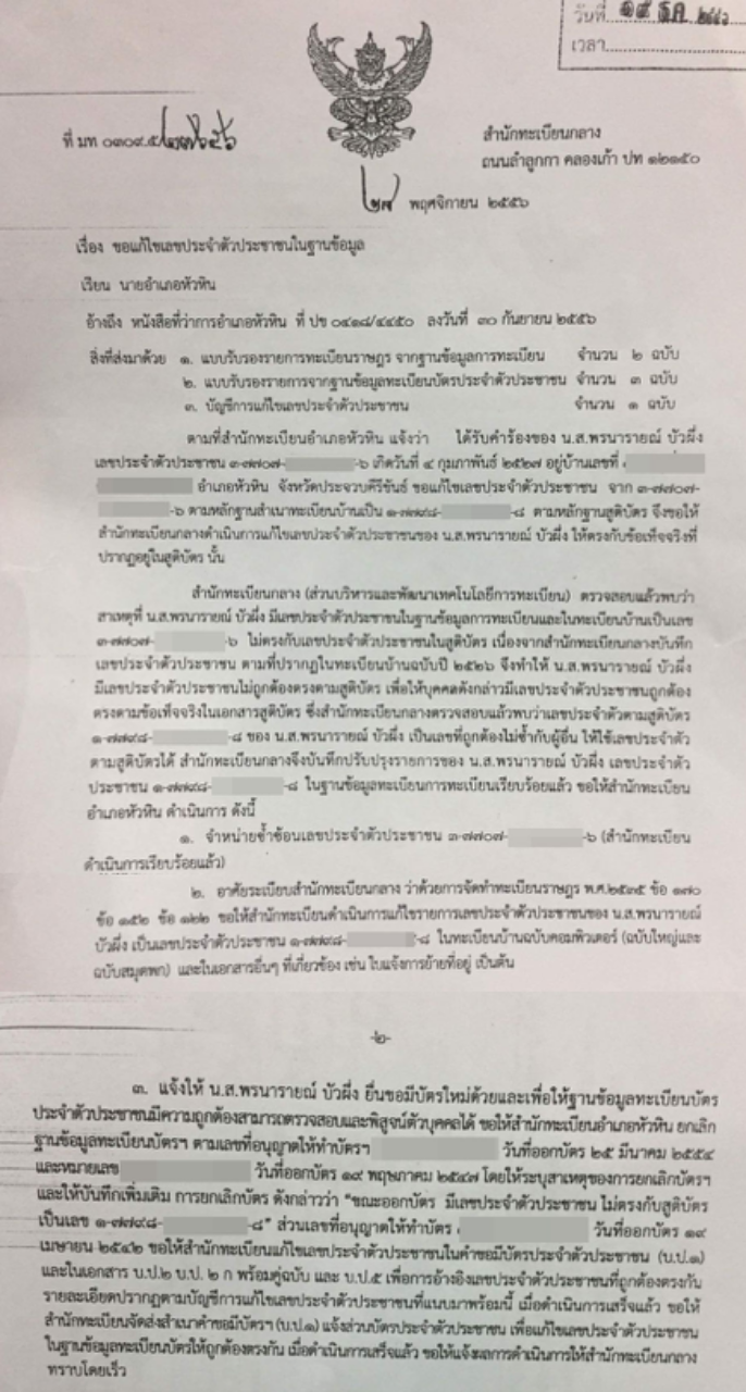 เคสแรก : สาวแบงก์สุดงง! เจอหนังสือจากอำเภอเรียกไปเปลี่ยนเลขบัตรปชช. หลักแรกไม่ตรงกับสูติบัตร
