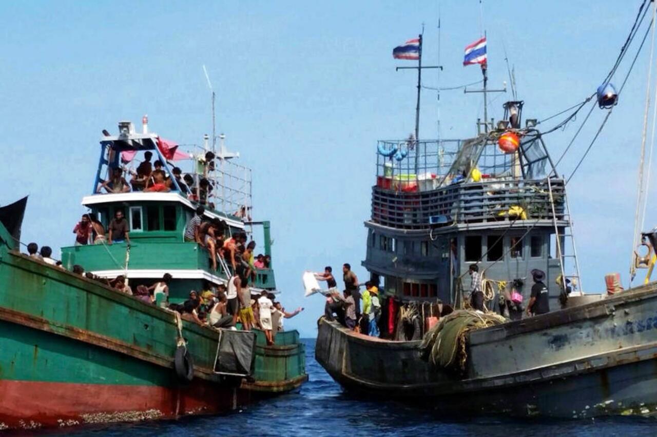 ต่อมา นายหน้าที่รับเงินมาตั้งแต่ทีแรก ก็จะทยอยส่งคนลงเรือเล็ก เพื่อเดินทางไปขึ้นเรือใหญ่ที่จอดลอยลำอยู่กลางทะเล ซึ่งส่วนใหญ่จะใช้เวลารอให้จำนวนคนบนเรือถึงเป้าหมายที่คิดไว้แล้วว่าคุ้มค่าในการเดินทาง จึงค่อยออกเรือ ซึ่งในปัจจุบันเรือลำใหญ่จะสามารถรับคนได้ประมาณ 500 คนขึ้นไป สูงสุดประมาณ 800-900 คนต่อลำ พอหาคนมาขึ้นเรือได้จำนวนที่คุ้มทุนแล้ว ก็ล่องเรือเข้ามาในอ่าวไทย โดยระยะเวลาที่เดินทางประมาณ 10-15 วัน