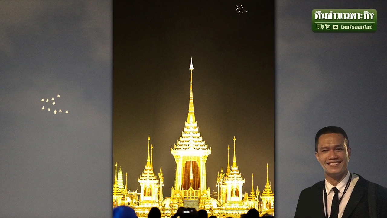 * ขอบคุณภาพฝูงนกบินเหนือพระเมรุมาศจากเฟซบุ๊ก Tom Potisit