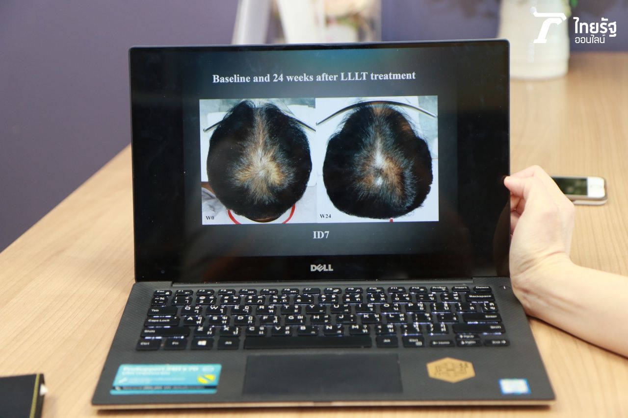 และก่อนหน้านี้ มีเครื่องรักษาออกมาในท้องตลาดมากมาย มีการศึกษาในคนจริงๆ แต่เป็นต่างชาติ แต่ปัญหาคือ คนไทยมีสีผม สีผิว ไม่เหมือนกัน เวลาที่ผมขาว หนังศีรษะขาว แสงจะลงไปได้ดี ต่างจากคนผิวสีดำ ผมดำ คนก็เลยตั้งคำถามกันว่า...