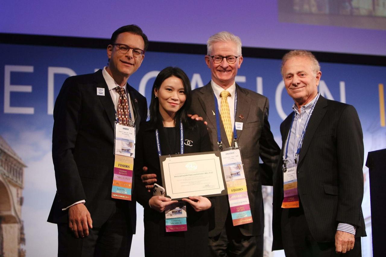 จากการที่เป็นคนชอบศึกษาวิจัย และชอบค้นคว้าหาคำตอบ จึงได้ส่งงานวิจัยไปประกวดใน ISHRS ซึ่งเป็นสถานบันที่มีแพทย์ปลูกผมทั่วโลก โดยส่งงานวิจัยที่ทำมาแล้วหลายครั้ง กระทั่ง ปีนี้ได้รับรางวัลที่ 1 ในที่สุด