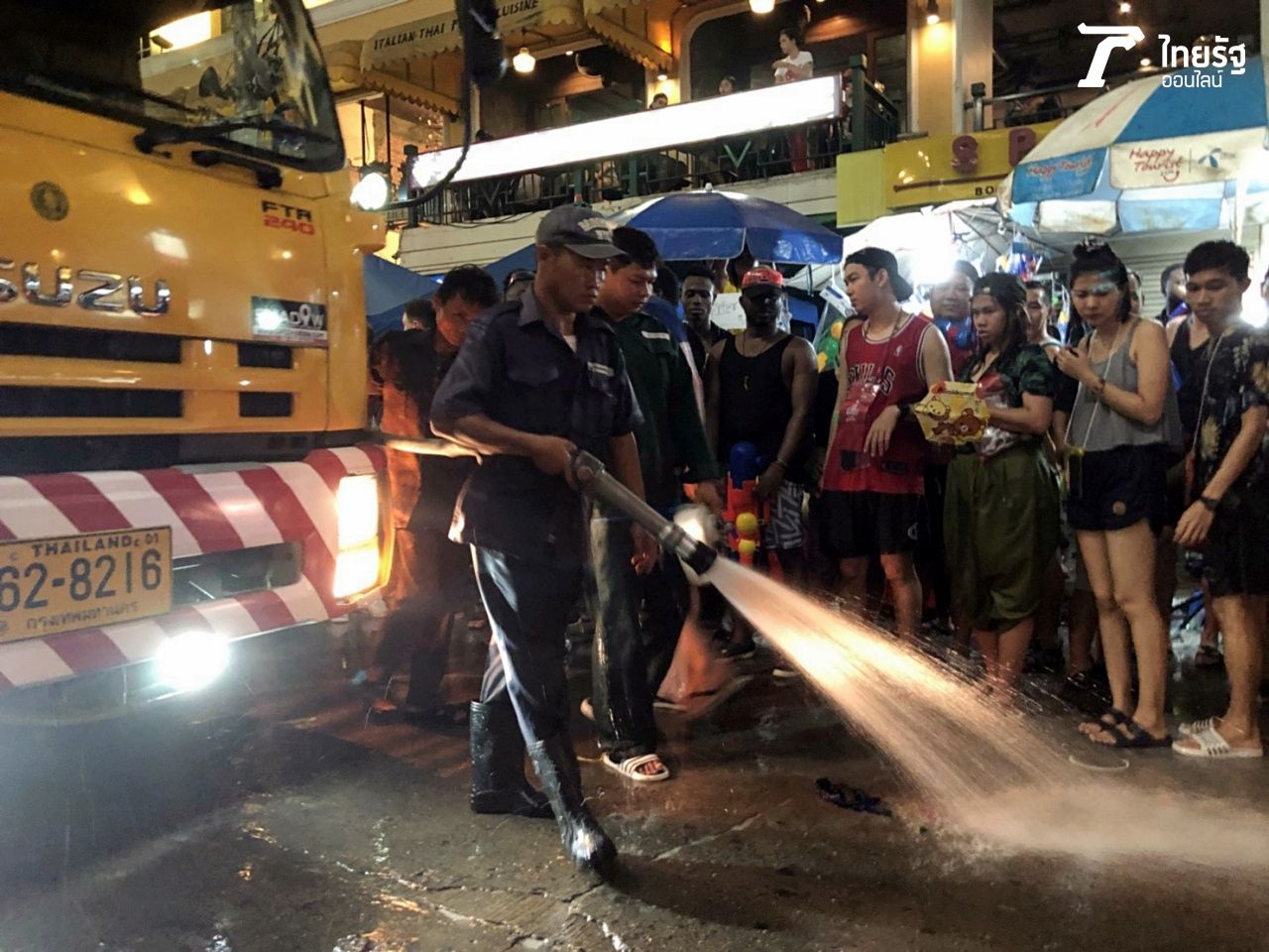 13 เม.ย. ถนนข้าวสารปิดให้เล่นน้ำตั้งแต่เวลา 3 ทุ่ม กระทั่ง 5 ทุ่มกว่า นักท่องเที่ยวยังทยอยเข้ามาเล่นเรื่อยๆ ทำให้เจ้าหน้าที่กวาดขยะ ต้องลุยงานตามหน้าที่ โดยมีนักท่องเที่ยวหลายคนไม่พอใจการทำความสะอาด ขณะที่ เจ้าหน้าที่กำลังฉีดน้ำล้างพื้นถนนที่เต็มไปด้วยขยะ และดินสอพอง แต่นักท่องเที่ยวบางคนกลับเอาปืนฉีดน้ำมารองเติมน้ำด้วยความสนุกสนาน สุดท้ายเมื่อกวาดขยะ ล้างถนนเสร็จเรียบร้อย ข้าวสารกลับมาคืนสภาพเดิมอีกครั้ง