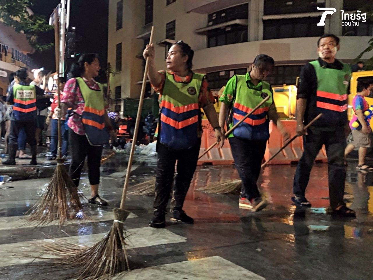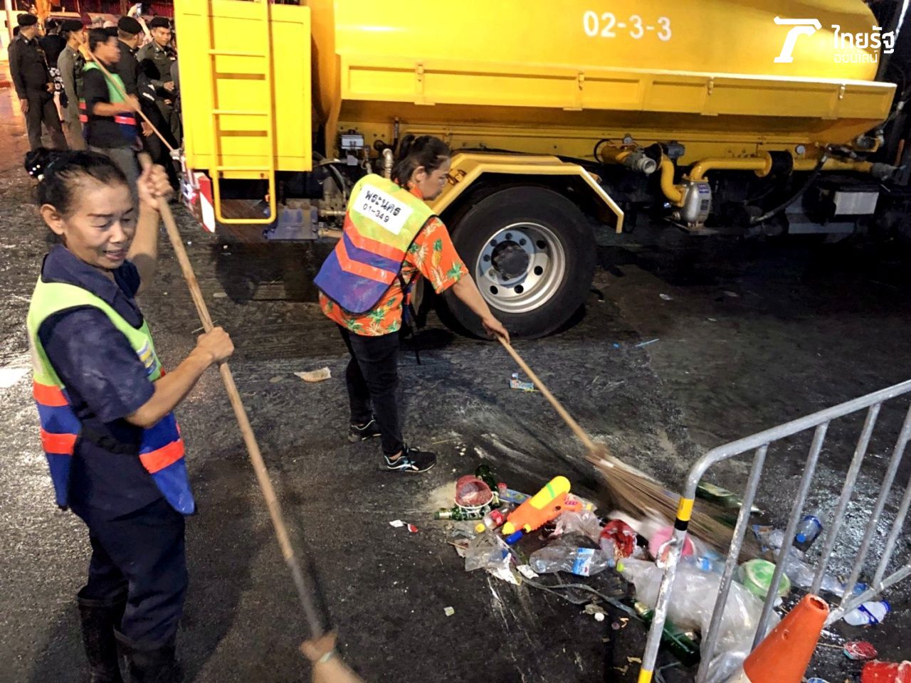 เจ้าหน้าที่ระบุว่า คงต้องรอช่วงเช้ามืดให้นักท่องเที่ยวน้อยลงกว่านี้ จึงจะเข้ามาล้าง กวาด และเก็บขยะอีกครั้ง เพราะไม่สามารถดำเนินการใดๆ ได้ในตอนนี้