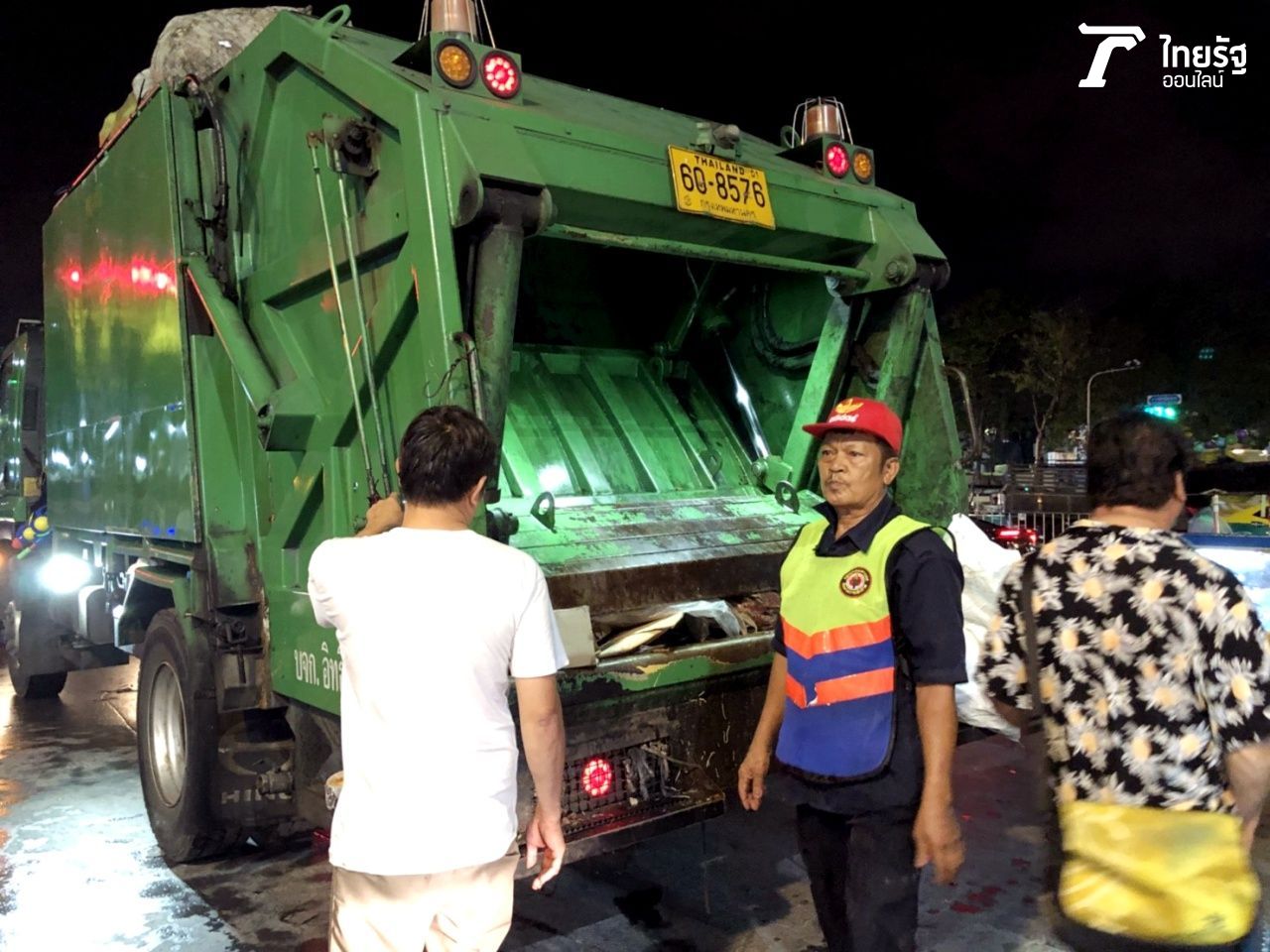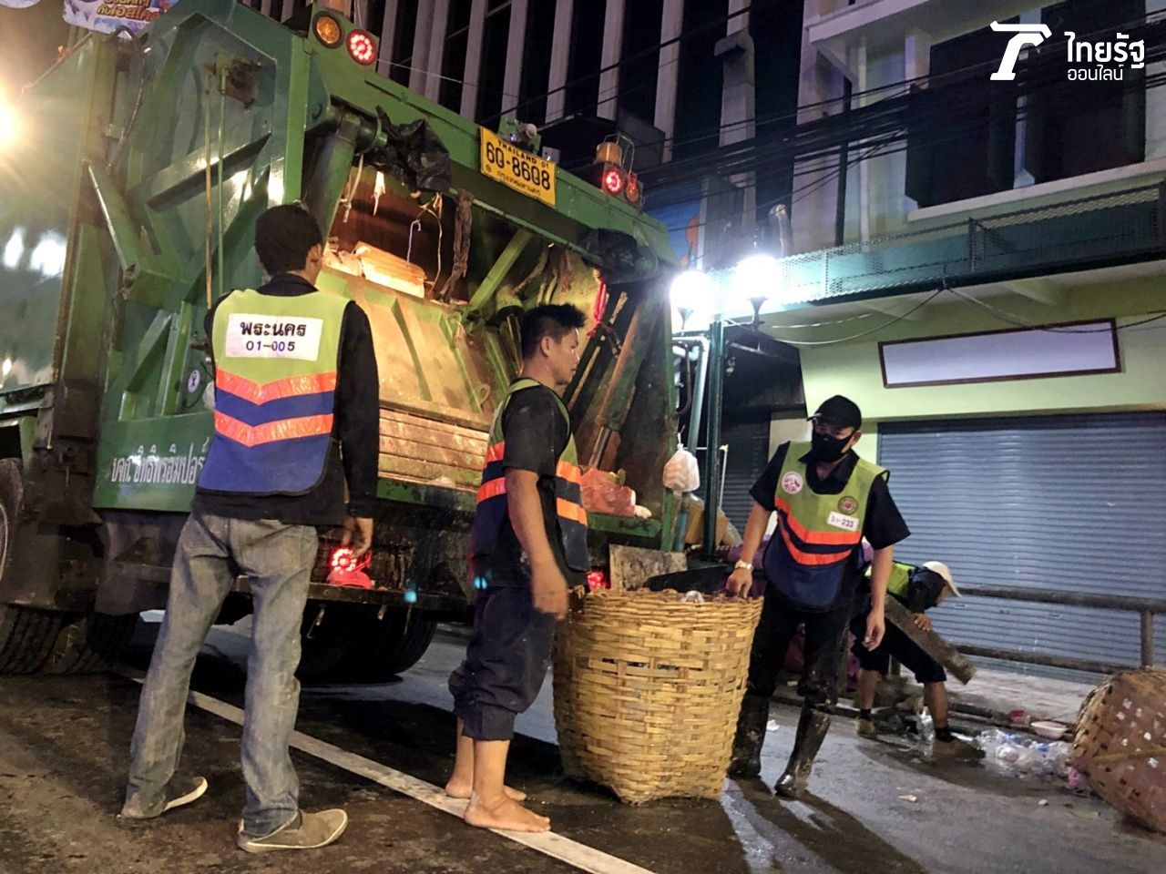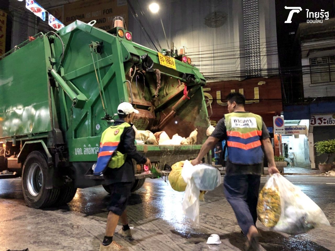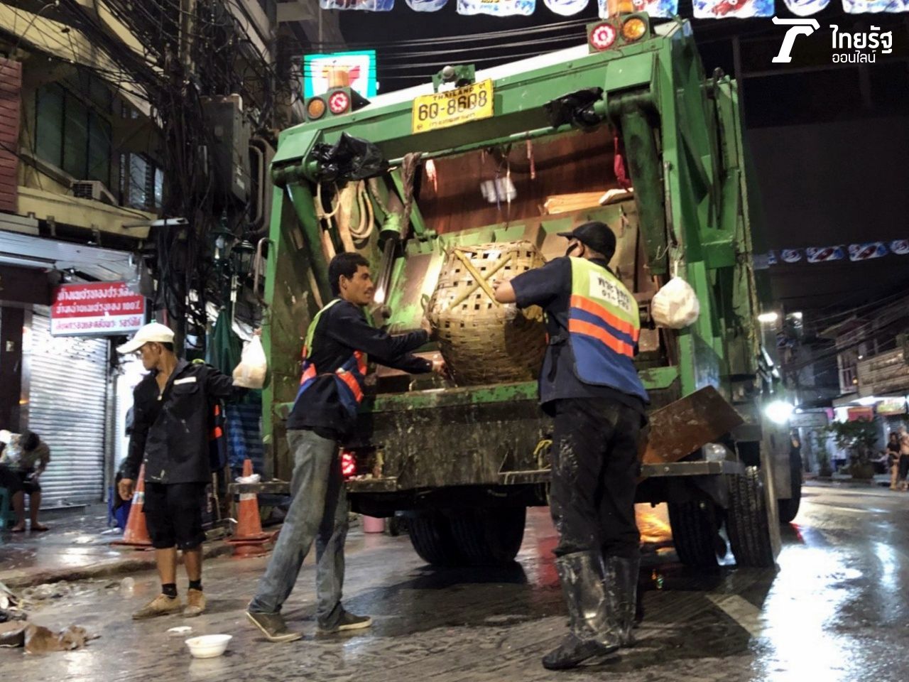 “พื้นที่ถนนข้าวสาร เราจะเก็บขยะ 1 รอบในตอนกลางคืน แต่ช่วงเทศกาลหลังจากเลิกเล่นน้ำและเก็บขยะรอบดึกแล้ว จะมีชุดเร่งด่วน เก็บตกในส่วนที่ยังเล่นไม่เสร็จเรียบร้อย หรือยังมีการทิ้งขยะอยู่ด้วยครับ โดยเจ้าหน้าที่จะใช้ระยะเวลาเก็บ 1-1.30 ชั่วโมง ขึ้นอยู่กับว่านักท่องเที่ยวจะถอยออกจากทางเท้าหรือยัง เพราะเจ้าหน้าที่ก็ไม่กล้าไปไล่ ส่วนขยะที่เก็บมาของเขตพระนคร จะไปไว้ที่ศูนย์ขนถ่ายขยะหนองแขมต่อไปครับ” หัวหน้าฝ่ายฤทธิพันธ์ อธิบาย