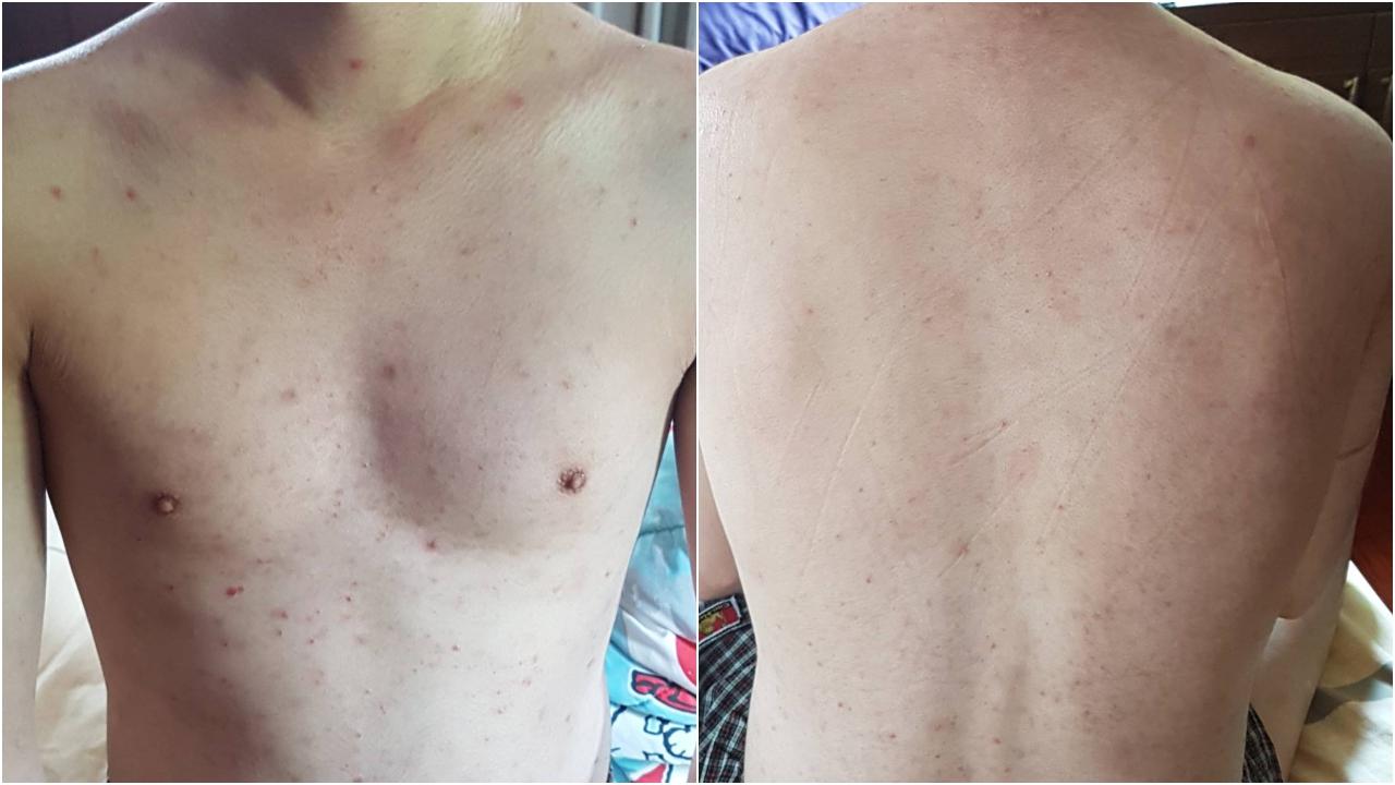 “พอลูกชายใช้ ซึ่งผลิตภัณฑ์ของเขาเป็นแบบเซรั่ม เราก็คิดว่าคล้ายโลชั่น ลูกชายและคุณยายที่ทาให้เขาก็ทาแบบลูบไปทั้งแขนทั้งขา และ ก็ที่ตัว ปรากฏว่าพอใช้ไปแล้วก็ยิ่งอักเสบ แค่ใช้วันแรกก็เริ่มมีแผลแดงๆ แต่ก็ยังไม่ได้คิดอะไร ก็ใช้ต่อถึง 5 วัน เท่านั้นแหละลุกลามทั่วทั้งตัว ลูกชายต้องทนทรมานมาก เรานำเรื่องนี้ไปถาม “แม่ทีม” คนขายเซรั่มตัวนี้ เขาก็อ้างว่าเป็นเอฟเฟกต์ เหมือนกับเห่อขึ้นมาก่อนแล้วมันจะค่อยๆ หยุด แต่ไม่ใช่เลย เมื่อใช้ต่ออาการกลับยิ่งแย่ลงเรื่อยๆ กระทั่ง 2 สัปดาห์ต่อมา ลูกบอกว่า “แม่ไม่ไหวแล้ว” ทั้งแสบและคันและลามไปเรื่อยๆ เดิมทีแผลเริ่มแห้งแล้ว แต่พอใช้แล้วแผลกลับเละกลายเป็นเปื่อยยุ่ย...”