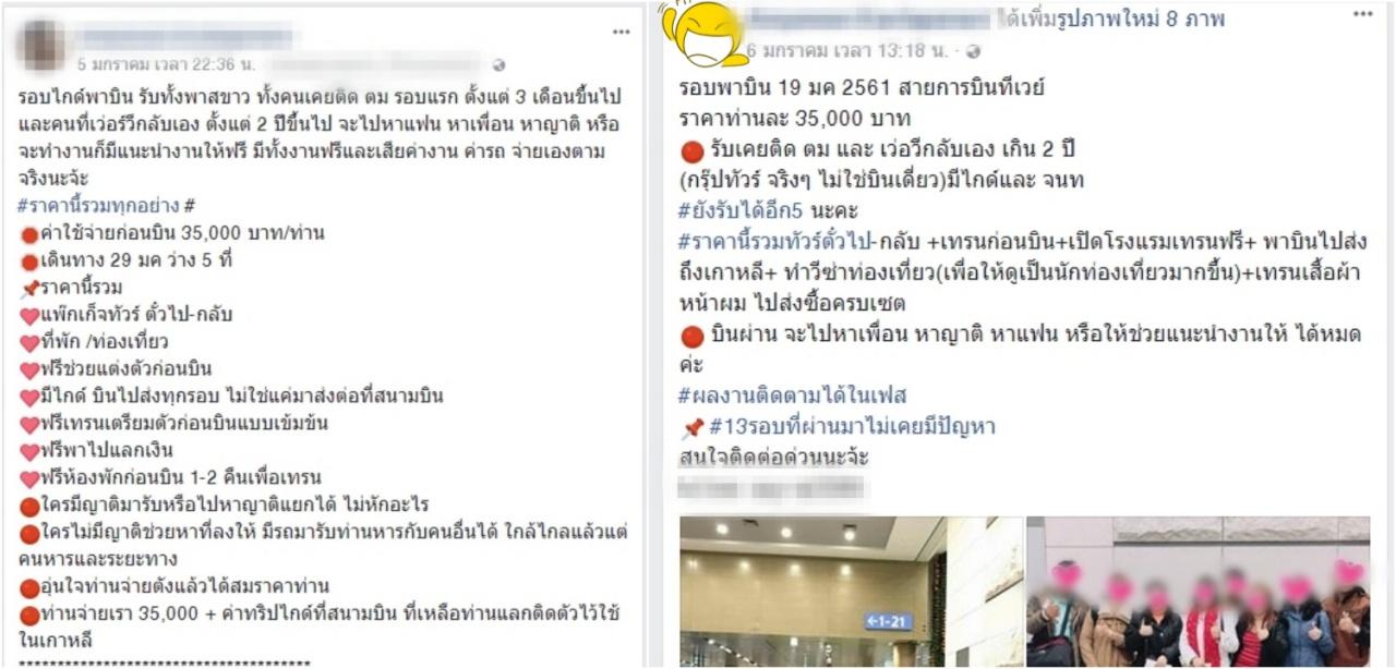 ฉะนั้น งานทุกอย่างที่เกาหลีมีจริง แต่ 70% ต้องเดินทางไปถึงที่ประเทศเกาหลีก่อน และไปรองานอย่างน้อยมาราว 30% ที่บินไปถึงแล้วมีคนมารอรับที่สนามบิน ดังนั้นคนที่ไปถึงแล้วมีคนมารับจะมีค่าใช้จ่ายที่สูงมาก หลักแสนบาทก็มี”