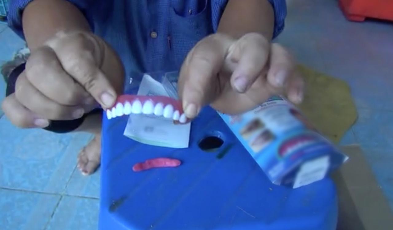 พ.ต.ท.ทพ.พจนารถ กล่าวต่อว่า ฟันปลอมที่คุณป้าซื้อมานั้น เป็นพลาสติกนั้น คาดว่าไม่ถึง 100 บาท ทั้งนี้ การทำฟันปลอมนั้นต้องผ่านวิธีการพิมพ์ปากโดยทันตแพทย์ ฉะนั้นการซื้อแบบนี้มายังไงก็ใส่ไม่ได้ เพราะโครงสร้างฟันของคนเราไม่เหมือนกัน”