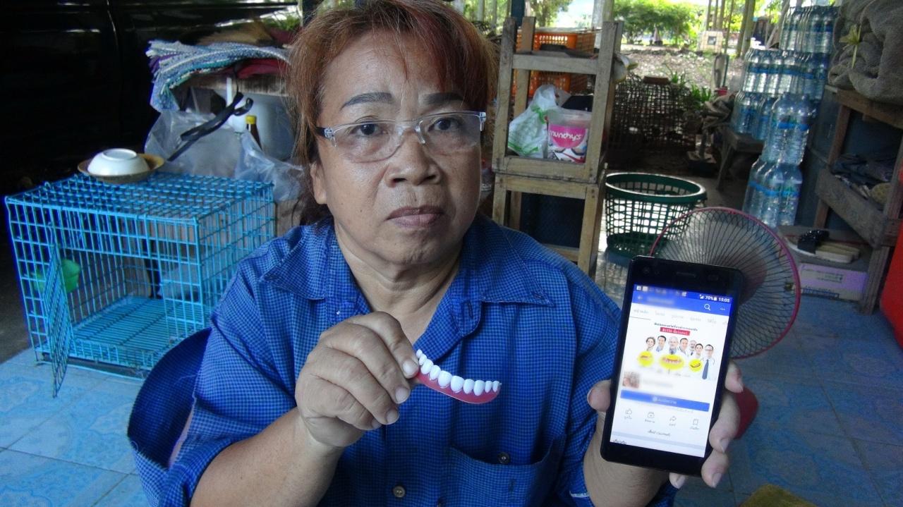 นี่คือเสียงจาก คุณป้าอานันต์ ชุมวรฐายี ชาวบ้านหมู่ 9 ต.บางบุตร อ.บ้านค่าย จ.ระยอง ที่มีอาชีพชาวสวนปลูกต้นไม้ เลี้ยงไก่ หลังจากสั่งซื้อฟันปลอมทางอินเทอร์เน็ต ในราคา 1,550 บาท แต่สิ่งที่ได้..กลับเป็นฟันยางที่ใช้ทำอะไรไม่ได้