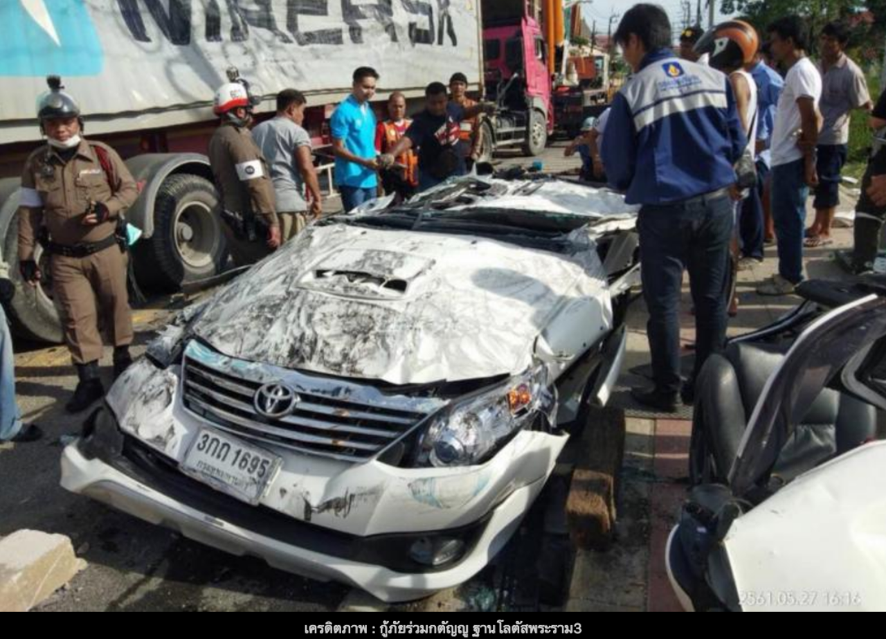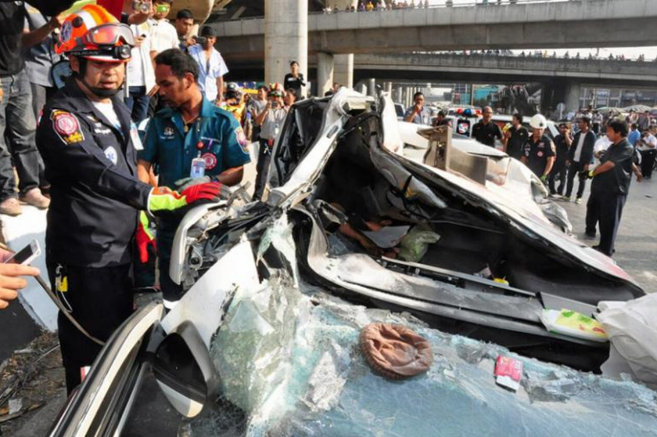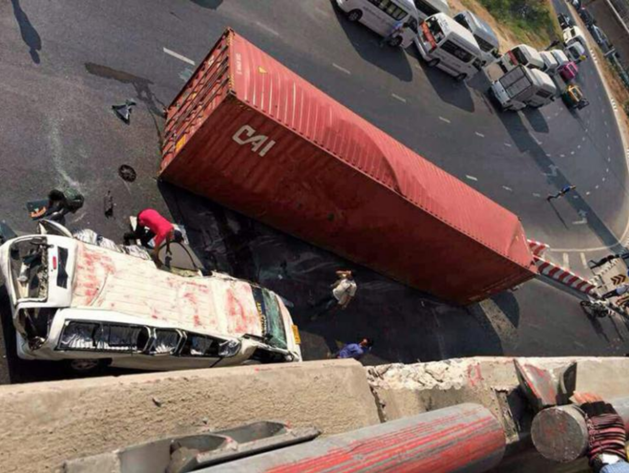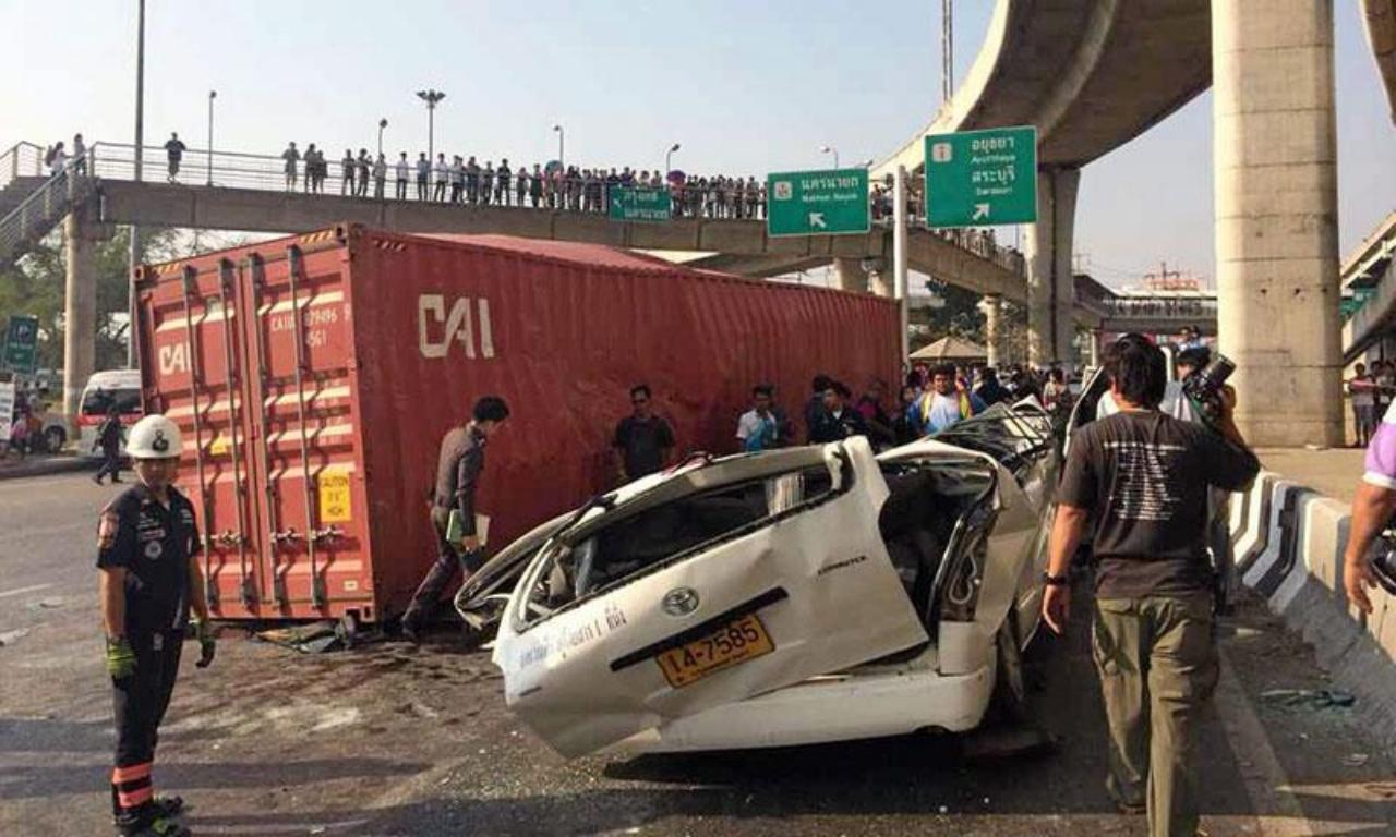 ช่วงบ่ายต้นเดือนกุมภาพันธ์ ปี 2557 โชเฟอร์รถตู้เคราะห์ร้าย กำลังขับรถกลับบ้านไปหาครอบครัวอันเป็นที่รัก จู่ๆ รถบรรทุกที่วิ่งอยู่บนทางยกระดับ ทำตู้คอนเทนเนอร์ พลัดหลุดลงมาด้านล่าง ทับรถตู้ที่ไม่รู้อีโหน่อีเหน่ จนส่งผลให้คนขับรถตู้เสียชีวิตทันที 1 ราย มิหนำซ้ำ หน่วยกู้ภัยต้องงัดศพออกจากตัวรถ ที่แทบจะแบนติดพื้นอย่างทุลักทุเล