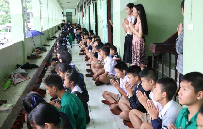 “ตั้งแต่ 13 ชีวิตติดอยู่ในถ้ำ ทางโรงเรียนได้จัดกิจกรรมสวดมนต์ ทำสมาธิทุกๆ วัน เพื่อส่งกำลังใจ นักเรียนแต่ละห้องก็จะเขียนภาพและข้อความเป็นกำลังใจ บางห้องก็แต่งเพลงเป็นกำลังใจให้กับเพื่อน” นายคเณศ กล่าว