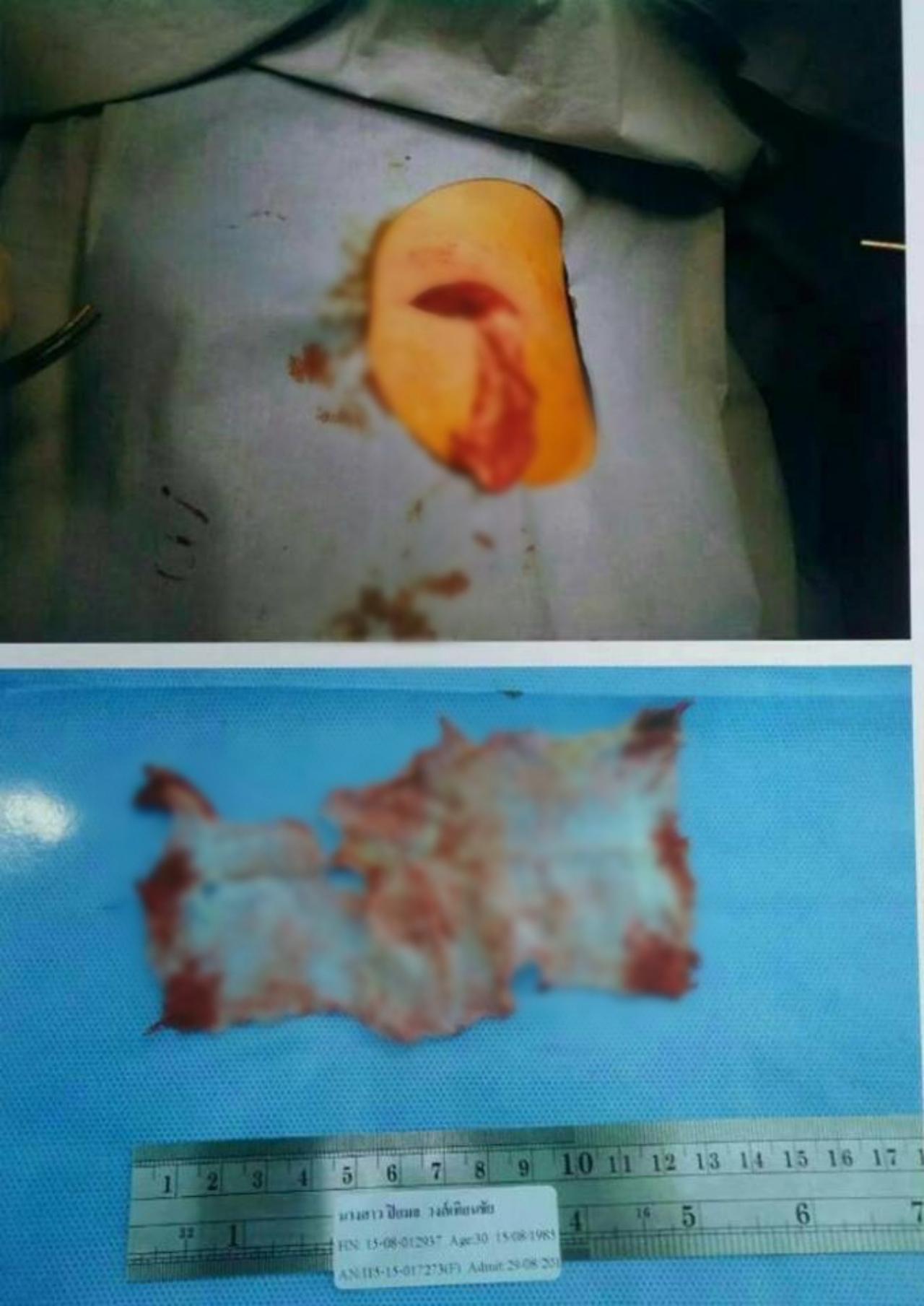 หมอจึงแนะนำว่าควรจะทำความสะอาดบาดแผลให้ลึกขึ้น เพราะที่ผ่านมา ไปเอกซเรย์ก็ไม่พบอะไร กระทั่งคืนนั้น หมอได้รักษาด้วยการวางยาสลบ และกรีดแผลที่ทำการผ่าตัดมา กระทั่งเจอผ้าก๊อซอยู่ในแผล “หมอที่เกาหลีลืมผ้าก๊อซไว้” โดยอยู่ใกล้ติดกับซี่โครง โดยเป็นผ้าขนาด 7 คูณ 14 เซนติเมตร!
