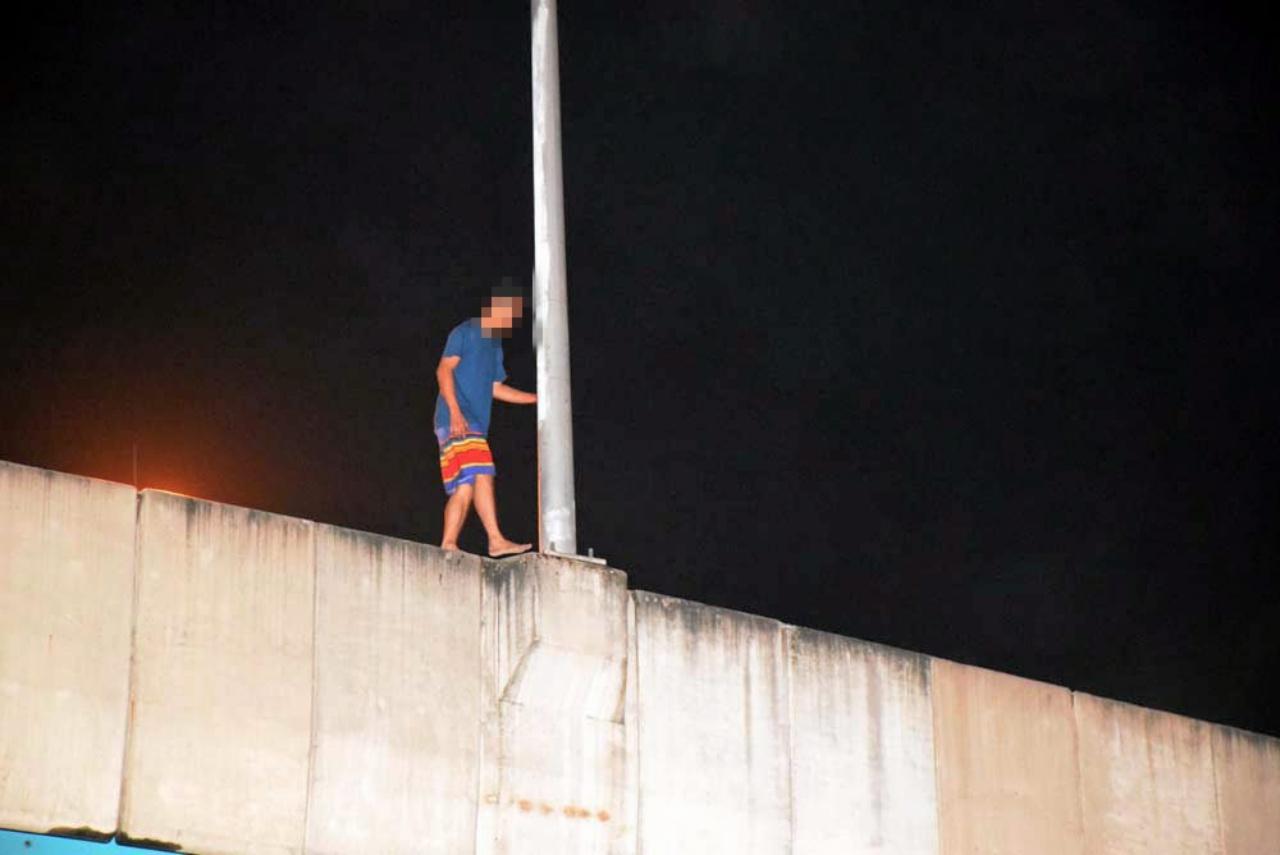 ต่อมา เขาก็ได้ขอสูบบุหรี่ จากนั้นเมื่อสูบบุหรี่หมดมวนก็ยืนขึ้น แล้วบอกกับเราว่า พี่ช่วยผมไม่ได้หรอก แล้วเขาก็ยกมือขึ้นพนมมือเรียกชื่อพ่อชื่อแม่แล้วก็พุ่งตัวกระโดด เราก็รีบพุ่งไปคว้าตัวเขาไปเพียงเสี้ยววินาทีเท่านั้น ซึ่งจังหวะนั้นพลาดไม่ได้ ถ้าตัดสินใจช้าเขาก็ตาย” นายอัญวุฒิ เล่าเหตุการณ์ระทึก