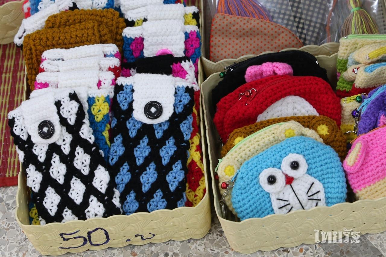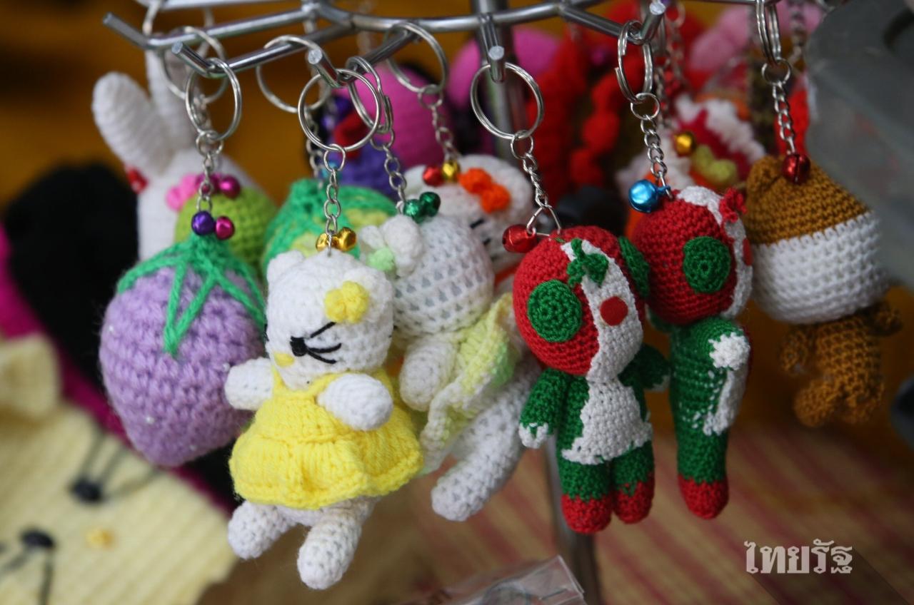 ทันทีที่ทีมข่าวก้าวเข้าไปถึงหน้าร้านเล็กๆ มีพวงกุญแจตุ๊กตาน่ารัก ซองใส่โทรศัพท์ หมวกไหมพรมวางเรียงรายอยู่ในพื้นที่ประมาณ 2 ตารางเมตร กับเสื่อ 1 ผืน ปูพื้นเป็นที่นั่งของแม่ค้าสาว เธอยิ้มแย้มแจ่มใส สองมือกำลังง่วนอยู่กับการถักไหมพรม