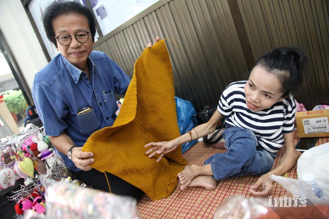“หนูอยากได้สถานที่ขายงานได้แน่นอน มีคนช่วยสั่งงานตลอด แค่นี้หนูก็ภูมิใจแล้วค่ะ เพราะว่าหนูก็ยังพอมีแรงทำงานอยู่ และหนูเองก็มีภาระ มีหน้าที่ ทั้งหน้าที่ในฐานะลูกสาว หน้าที่ในฐานะพี่สาว หน้าที่ในฐานะภรรยา ที่จะต้องเลี้ยงดูครอบครัวจากนี้ต่อไป ก็อยากให้ช่วยซื้องานถักไหมพรมของหนูค่ะ เพราะว่าหนูไม่อยากใช้คำว่า ‘ช่วยบริจาค’ เพราะคนอื่นที่เป็นหนักกว่าหนูยังมีอีกเยอะ คนที่เขาแย่กว่าหนูก็ยังมีอยู่ แต่หนูยังมีแรงทำงานก็ขอเอางานที่หนูทำมาแลกเป็นเงินดีกว่าค่ะ”