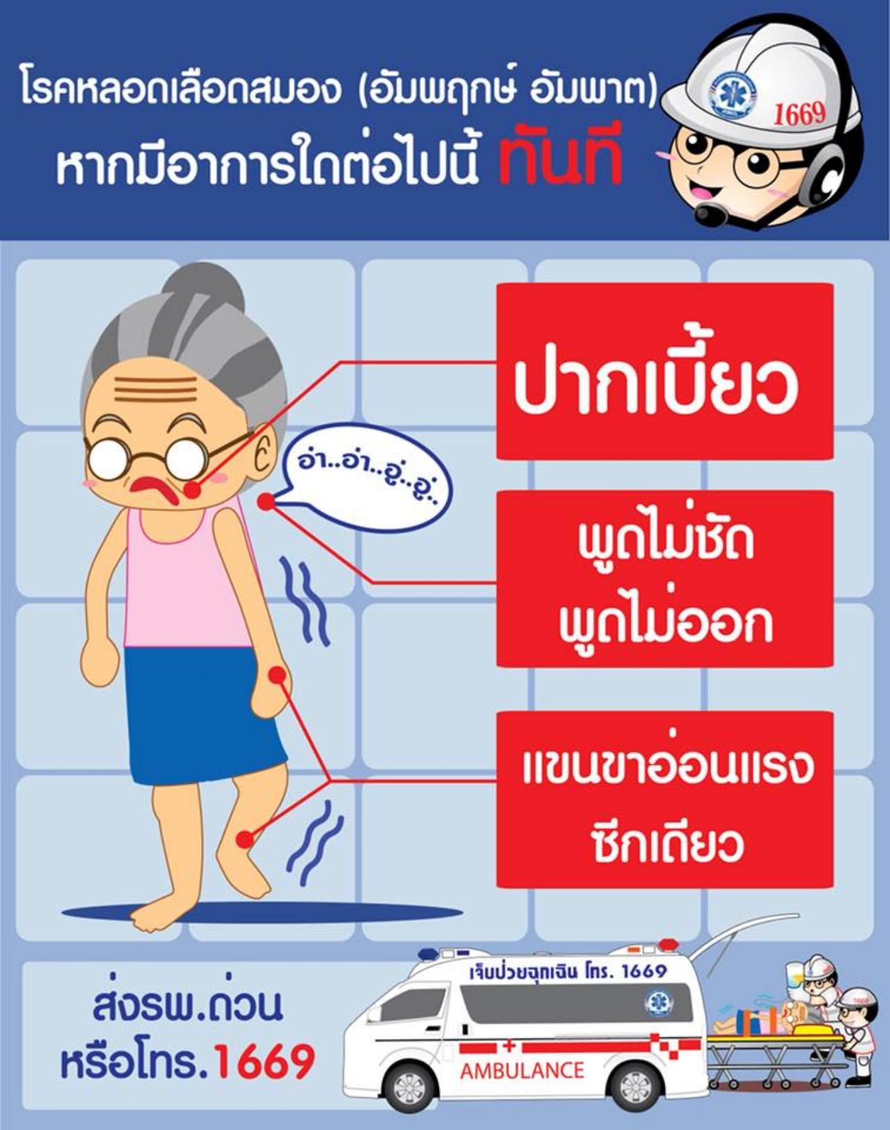 โรคนี้มักเกิดขึ้นแบบทันทีทันใด คนที่จะเป็นจะไม่ค่อยรู้ตัวมาก่อน ซึ่งหากเกิดอาการแล้ว สิ่งที่ปรากฏต่อร่างกายทันทีคือ หน้าเบี้ยว แขนขาอ่อนแรง พูดไม่ชัด และเรื่องเวลา เป็นสิ่งสำคัญที่จะช่วยได้คือ ต้องเร็วที่สุด ภายใน 3-4 ชั่วโมง