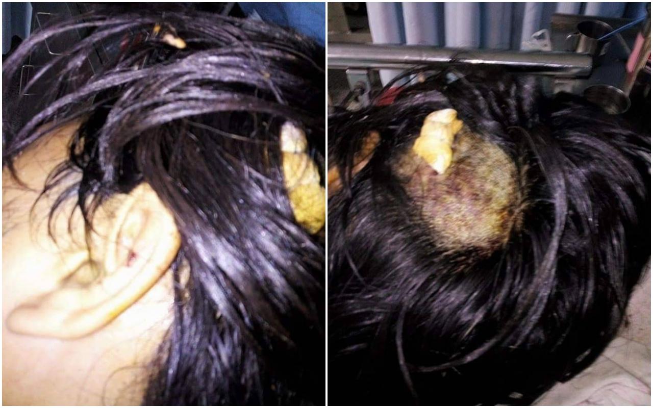 ชายกลุ่มนั้นถามแต่ว่า ‘ของอยู่ไหนๆ’ ตนตอบเหมือนเดิมก็โดนเตะซ้ำ สักพักก็รู้สึกว่ามีของแข็งกระแทกที่หัวก็เลยจับดู พบว่ามีเลือดออก ตนก็บอกกลุ่มชายว่า ‘หัวผมแตกแล้ว’ ชายคนหนึ่งถามว่า ‘ที่หัวมึงแตกเพราะหกล้มใช่ไหม’ ซึ่งตนรู้คำตอบดีว่าถ้าตอบว่าไม่ใช่ก็ต้องโดนหนักอีก ตนจึงตอบว่า ‘ใช่’ หนึ่งในนั้นก็บอกว่า ‘อย่าให้เจอนะ’ พอพูดจบอีกสักพักก็มีเสียงคนตะโกนออกมาว่า ‘เจอแล้วๆ’ ซึ่งตนไม่รู้ว่าเจออะไร ที่ไหน แต่ถูกกลุ่มชายสั่งให้ไปชี้ของที่ตกอยู่ข้างคูน้ำ โดยเป็นยาบ้า 20 เม็ดอยู่ในหลอด ตนก็กลัวว่าถ้าไม่ชี้จะโดนซ้อมอีก