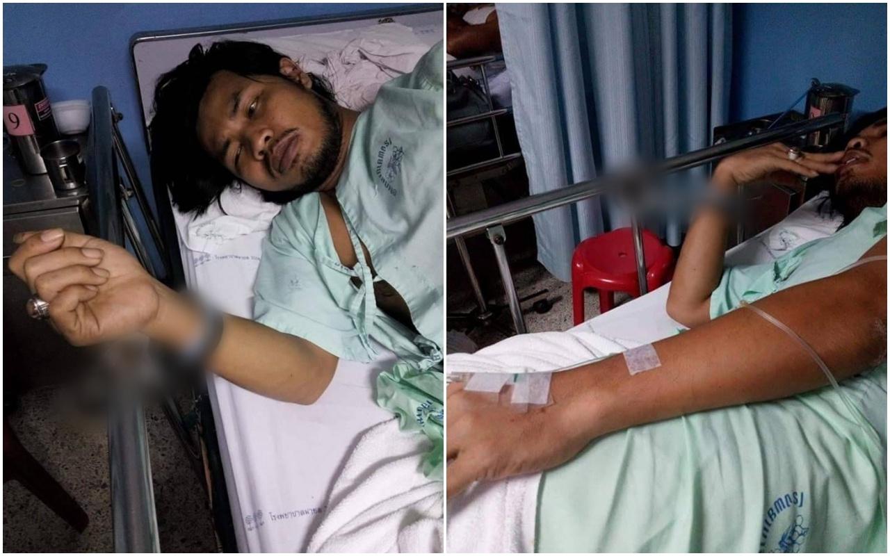 พอไปถึงโรงพยาบาลทำแผลเสร็จโดยที่ตนไม่ได้ให้ปากคำ ไม่ได้พูดกับหมอว่าโดนอะไรมา โดยฝ่ายเจ้าหน้าที่ตำรวจเป็นผู้บอกรายละเอียดที่เกิดขึ้นทั้งหมดกับหมอ ซึ่งทราบจากหมอภายหลังว่า เจ้าหน้าที่พยายามเอาตัวตนไปโรงพัก แต่เห็นจากสภาพร่างกายของตนว่าไม่ไหว จึงให้นอนพักที่โรงพยาบาลก่อน