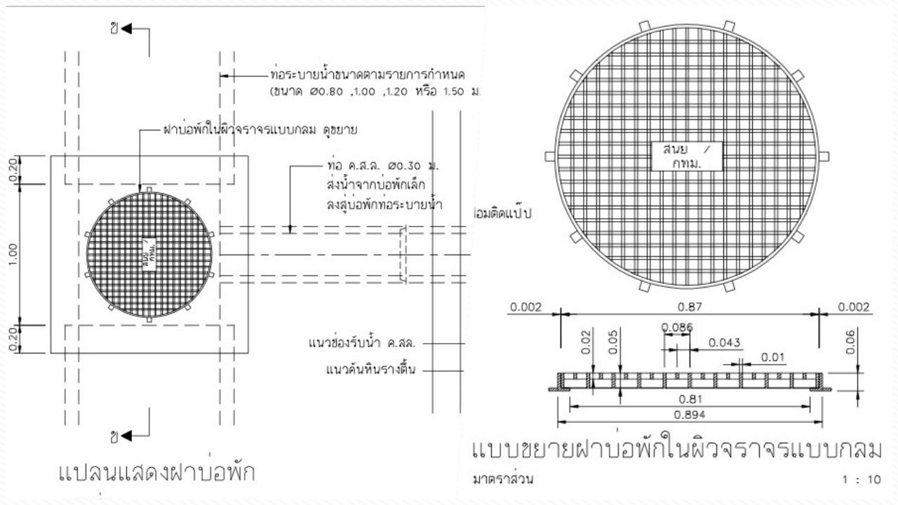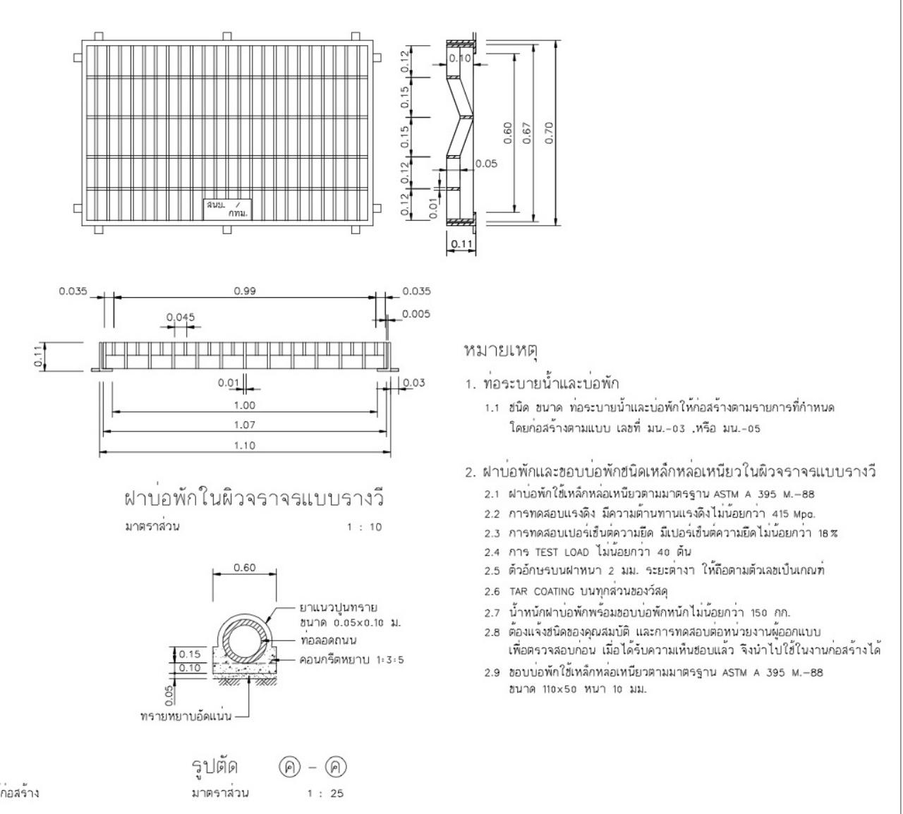- น้ำหนักฝาบ่อพักขอบบ่อไม่น้อยกว่า 150 กก.