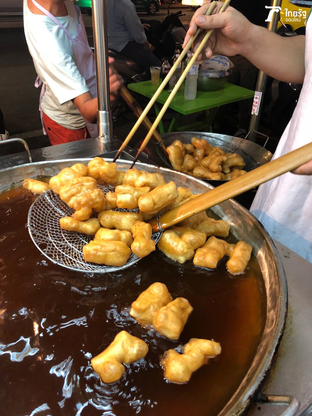 สำหรับร้านแห่งที่ 3 คือ ร้าน ปาท่องโก๋เสวย ที่มีทั้งปาท่องโก๋ทอดร้อนๆ กรอบๆ แบบดั้งเดิม หรือปาท่องโก๋ทอด นำมาย่างบนเตาถ่าน แล้วเลือกจิ้มกับท็อปปิ้งหลากรส เช่น สังขยาใบเตย หรือนมข้นหวาน ซึ่งเปิดขายมา 24 ปี เป็นร้านรถเข็นเล็กๆ ในรูปแบบธุรกิจครอบครัว ตั้งอยู่ริมถนนหน้าร้านสะดวกซื้อใกล้ซุ้มประตูจีน โดยมีนายธนกร เจริญพิมลกุล เจ้าของร้าน ยืนนวดแป้ง หั่นแป้ง และทอดให้เห็นว่าทำกันสดใหม่จริงๆ