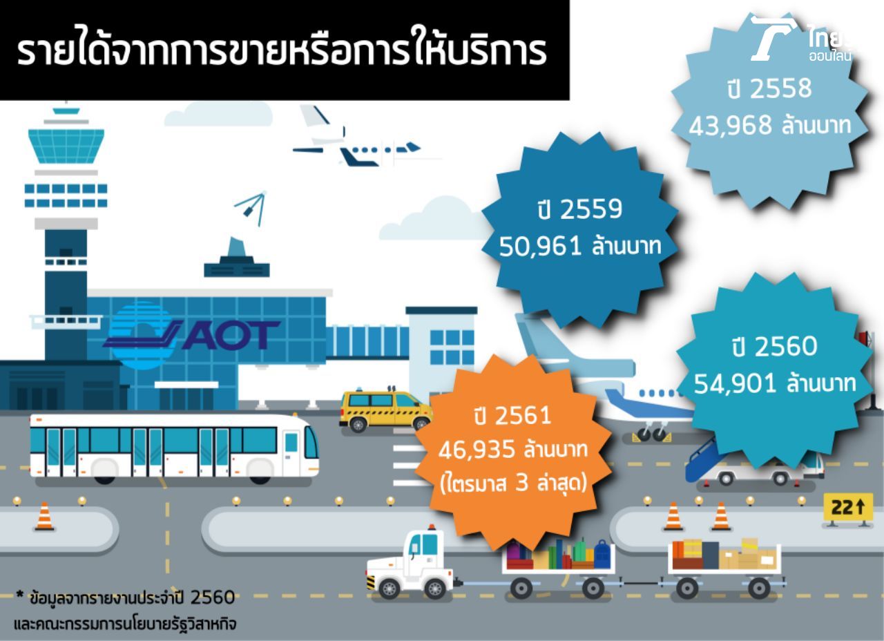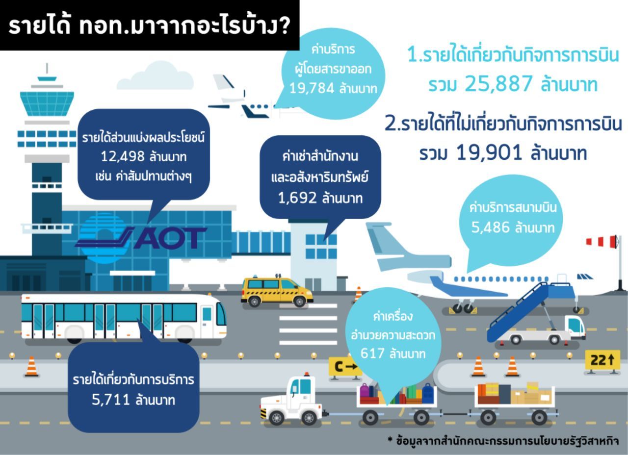 - รายได้เกี่ยวกับการบริการ 5,711 ล้านบาท เช่น การให้เช่าพื้นที่ของสายการบินต่างๆ