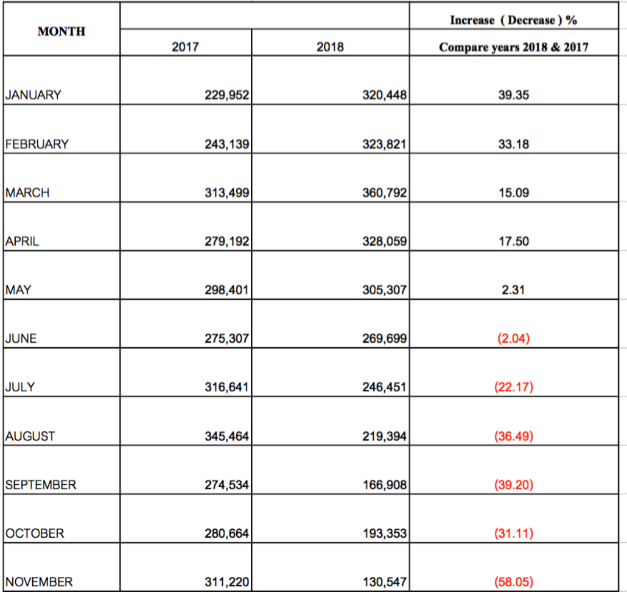 สำหรับสถิติตัวเลขยอดนักท่องเที่ยวตั้งแต่เดือน 1 ม.ค. - 20 พ.ย. 61 ลดลงมากน้อยเพียงไรนั้น ทีมข่าวฯ ได้รับข้อมูลจากสมาคมไทยธุรกิจการท่องเที่ยว หรือแอตต้า (Association of Thai Travels Agents/ ATTA) ซึ่งเป็นสถิติจำนวนนักท่องเที่ยวที่เก็บรวบรวมมาจาก บริษัททัวร์ที่เป็นสมาชิกของ ATTA ทั้งสิ้น 1,580 บริษัท ที่มาแจ้งใช้บริการรับนักท่องเที่ยว ที่สนามบินสุวรรณภูมิ และดอนเมือง