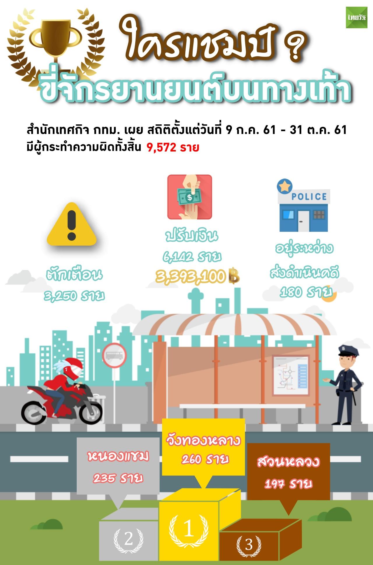 “วังทองหลาง” ขึ้นแท่น มีผู้ขับขี่รถจยย.บนทางเท้ามากที่สุด!