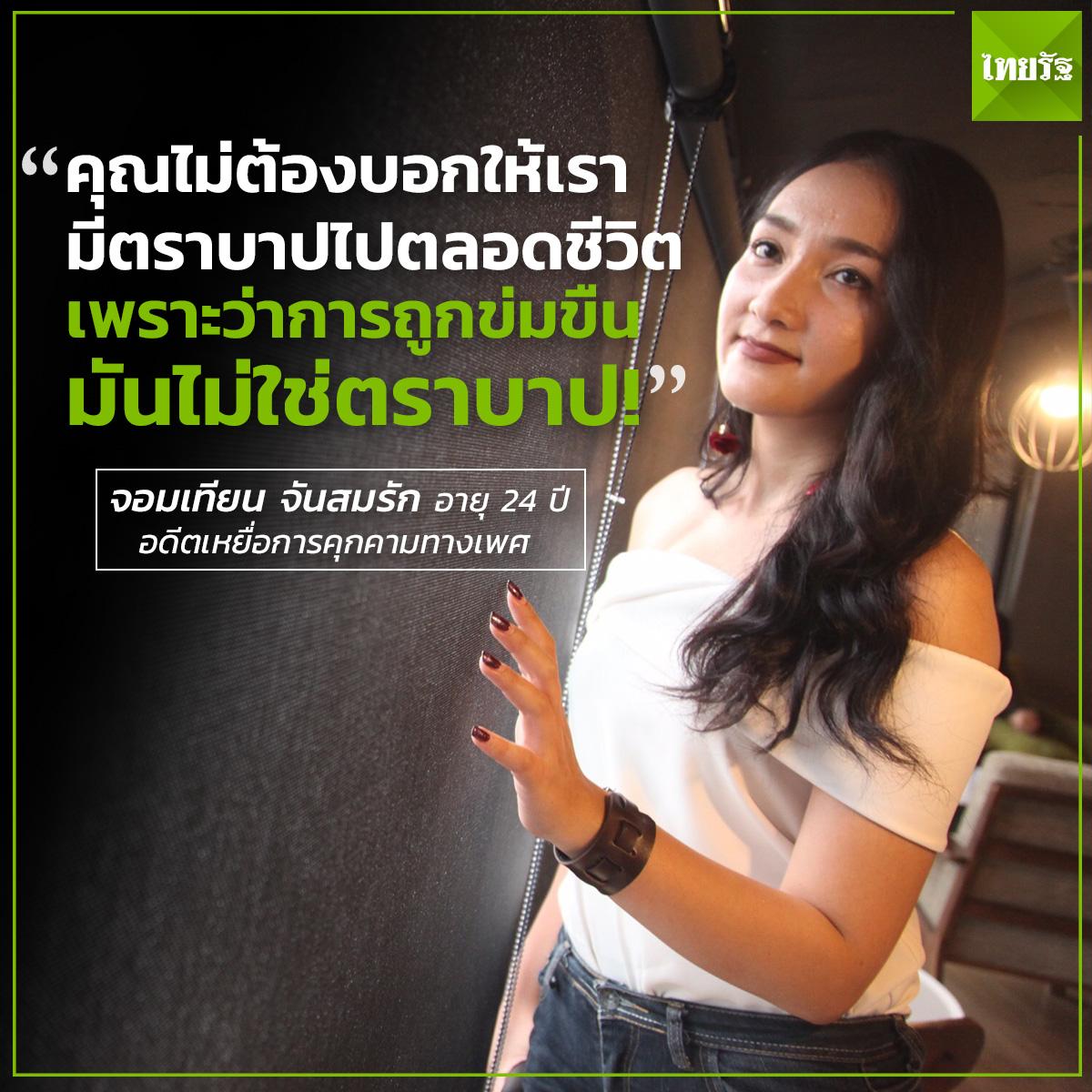 “คุณไม่ต้องบอกให้เรามีตราบาปไปตลอดชีวิตนะ เพราะว่าการถูกข่มขืน มันไม่ใช่ตราบาป!” คุณจอม ย้ำด้วยสายตาเข้มแข็ง