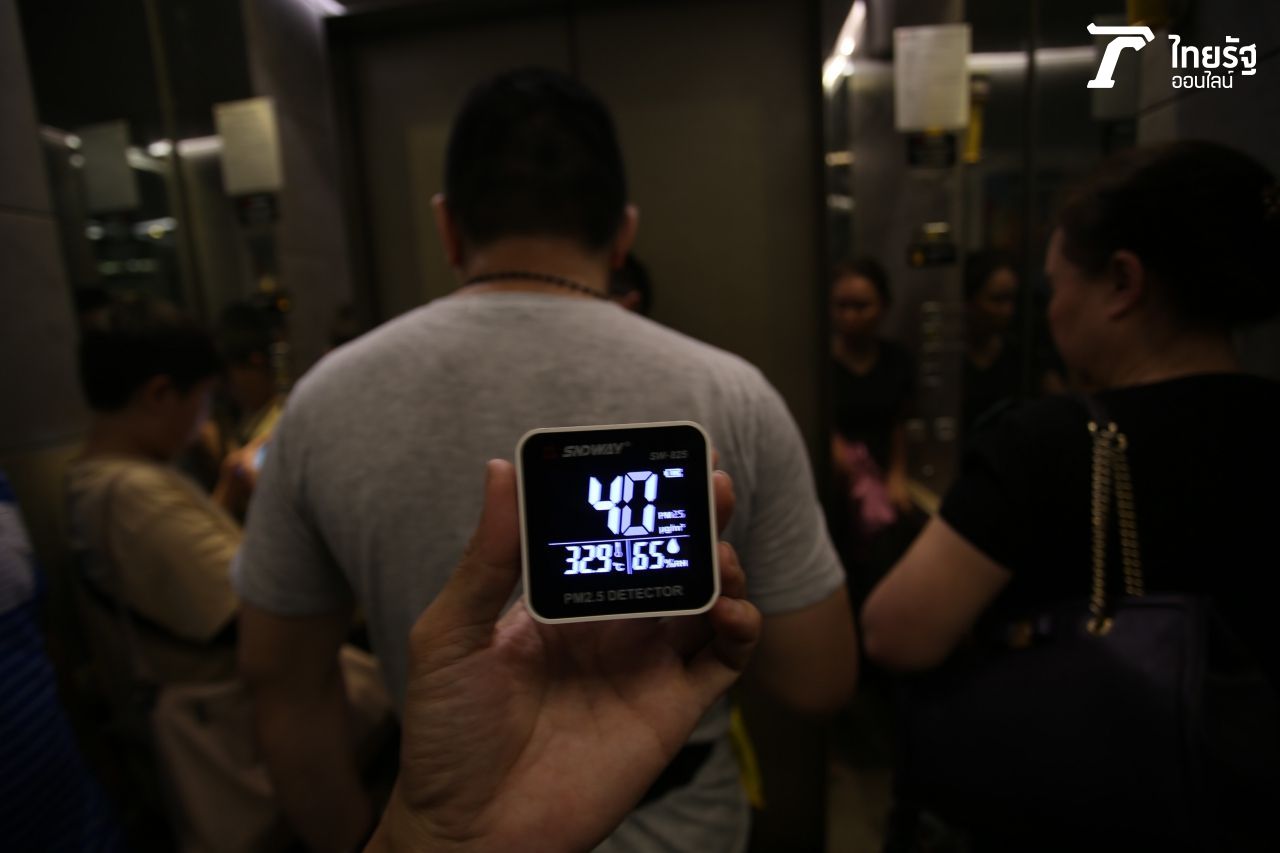ทั้งนี้ ตลอดเวลาร่วมชั่วโมงที่ทีมข่าวฯ เฝ้าสังเกตการณ์ ละอองน้ำหลังพ่นออกมา ได้พัดปลิวไปตามทิศทางของกระแสลม ในระยะรัศมีความกว้างประมาณ 50 เมตร จนกระทั่งเวลา 17.00 น. ได้หยุดฉีดน้ำ วัดค่าปริมาณฝุ่น PM 2.5 บริเวณระเบียงได้ 38-40 ไมโครกรัม จากนั้นทีมข่าวฯ ลงมาวัดบริเวณชั้น 1 ของตึกใบหยก วัดปริมาณฝุ่น PM 2.5 ได้ 42 ไมโครกรัม