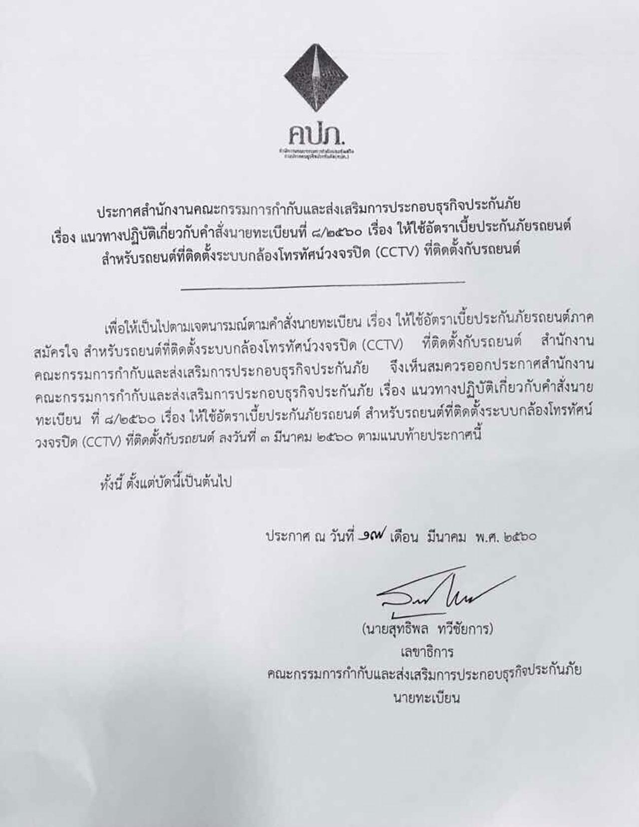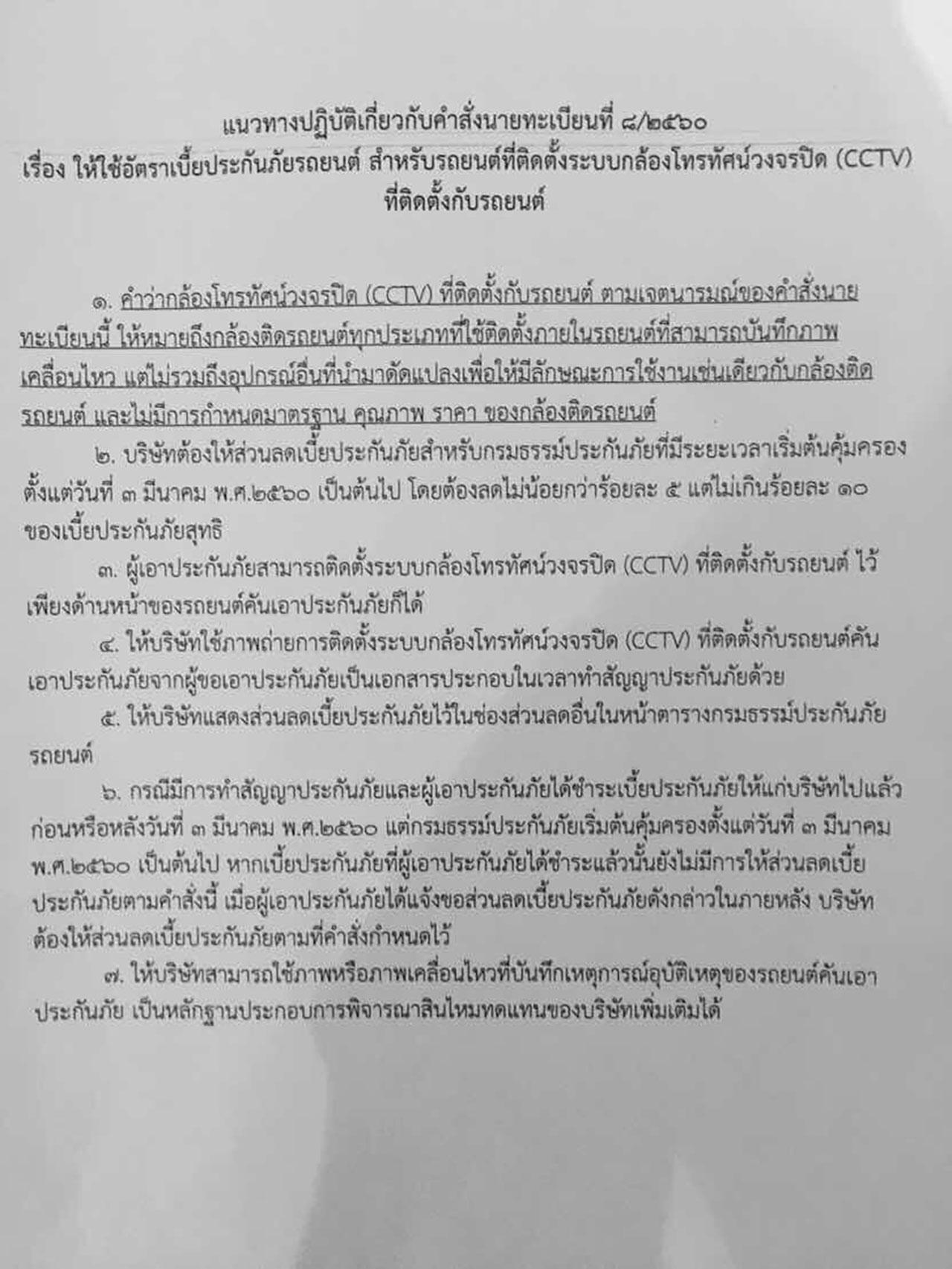 “ตอนนี้มีหน่วยงานรัฐที่เห็นประโยชน์จากการรณรงค์ติดกล้องในรถยนต์และนำไปปฏิบัติ คือ คณะกรรมการกำกับและส่งเสริมการประกอบธุรกิจประกันภัย (คปภ.) ออกเป็นระเบียบบังคับว่าถ้ารถที่ติดกล้อง บริษัทประกันภัยต้องลดเบี้ยประกันภัย 5 – 10 เปอร์เซ็นต์ แต่ต้องมีหลักฐานว่าติดตรงไหน บางบริษัทประกันภัยมีซื้อประกันแถมกล้องติดรถก็มี บางคนทักผมว่ามารณรงค์ให้คนติดกล้องในรถได้เปอร์เซ็นต์มาหรือเปล่า ได้ยินแล้วผมรู้สึกเฉยๆ เพราะผมรู้ว่าเราบริสุทธิ์ใจ อย่างงานมหกรรมกล้องหน้ารถวันที่ 1 และ 2 เม.ย. นี้ที่หอศิลป์ ผมไปติดต่อขอใช้สถานที่ฟรี พอไม่เก็บค่าที่ก็ไปขอร้องบริษัทต่างๆ ที่ขายกล้อง ซึ่งมีติดมา 6-7 บริษัท ให้ขายในราคาต้นทุน เพราะรถในประเทศไทยมี 10 กว่าล้านคัน ขณะนี้ติดกล้องประมาณแสนกว่าคัน มีรถที่จะติดกล้องอีกเป็นล้าน อันนี้ก็เป็นกิจกรรมหนึ่งอย่าง ที่อาจช่วยให้คนสนใจหันมาติดกล้องกันมากขึ้น