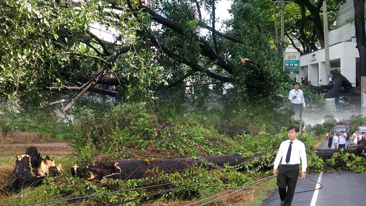 ต้นไม้ล้มทับเสาไฟหักที่ชิดลม สาวดวงกุดขับจยย.ผ่านดับคาที่