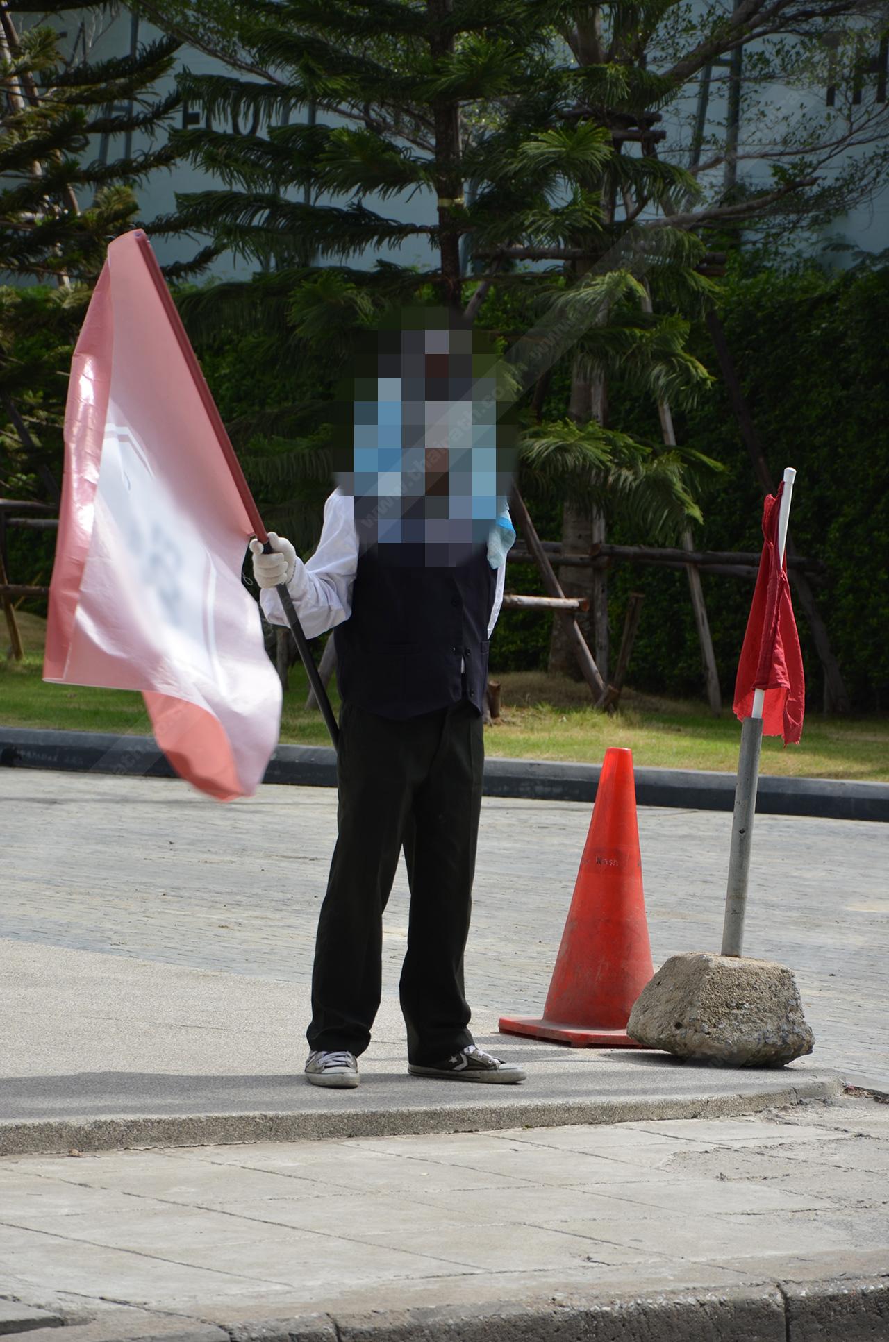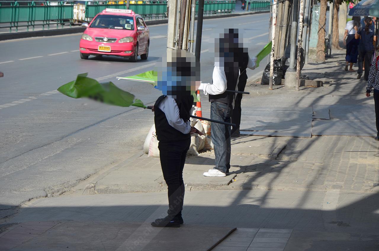 หญิงวัย 45 ปี จาก จ.หนองบัวลำภู ให้สัมภาษณ์กับผู้สื่อข่าวบนฟุตปาทขณะปฏิบัติหน้าที่โบกธง ว่าตนทำงานนี้ได้เกือบ 4 ปี ทำเฉพาะวันเสาร์และอาทิตย์เพื่อเป็นรายได้เสริม ส่วนวันธรรมดาทำงานประจำเป็นลูกจ้างบริษัทผลิตเฟอร์นิเจอร์