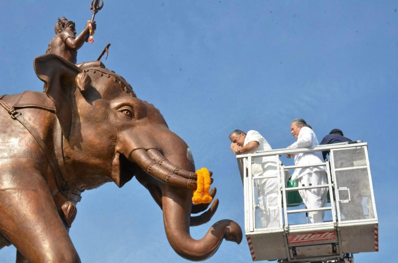 เป็นที่มาในการจัดสร้างประติมากรรมพระอินทร์ทรงช้างเอราวัณ บริเวณลานศาลาว่าการกรุงเทพมหานคร 2 ดินแดน สมัย ม.ร.ว.สุขุมพันธุ์ บริพัตร ดำรงตำแหน่งผู้ว่าฯกทม. และที่ประชุมคณะผู้บริหาร กทม.มีมติ เมื่อวันที่ 14 ก.พ. 2554 ให้ดำเนินการจัดสร้างด้วยงบประมาณ 37 ล้านบาท