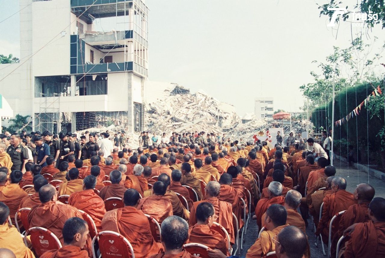 เหตุการณ์ครั้งนั้น หลวงพ่อคูณเดินทางมาที่ซากตึกถล่ม เพื่อให้กำลังใจเจ้าหน้าที่และอาสากู้ภัยที่เข้าช่วยเหลือคนที่ติดอยู่ในซากของโรงแรม และได้แจกพระเครื่อง พร้อมกับกล่าวว่า "พวกมึงเหนื่อยกัน กูให้ของดีให้พวกมึงไว้คุ้มครองตัวกันนะ"