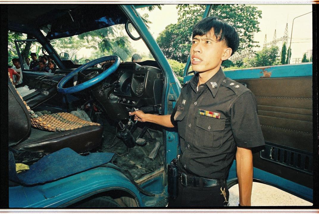 คนขับมอเตอร์ไซค์ ตัดสินใจแจ้งความกับตำรวจ สน.ลุมพินี การหายไปของชาวต่างชาติที่ขับรถ 6 ล้อ ทำให้หลายคนเกิดคำถามว่า ชาวต่างชาติที่ไหนจะมาขับรถบรรทุกกลางกรุงเทพฯ สุดท้ายรถหก 6 ล้อที่ถูกทิ้งไว้กลางไฟแดง ถูกเคลื่อนย้ายไปไว้ที่โรงพัก รอให้เจ้าของรถมาติดต่อ