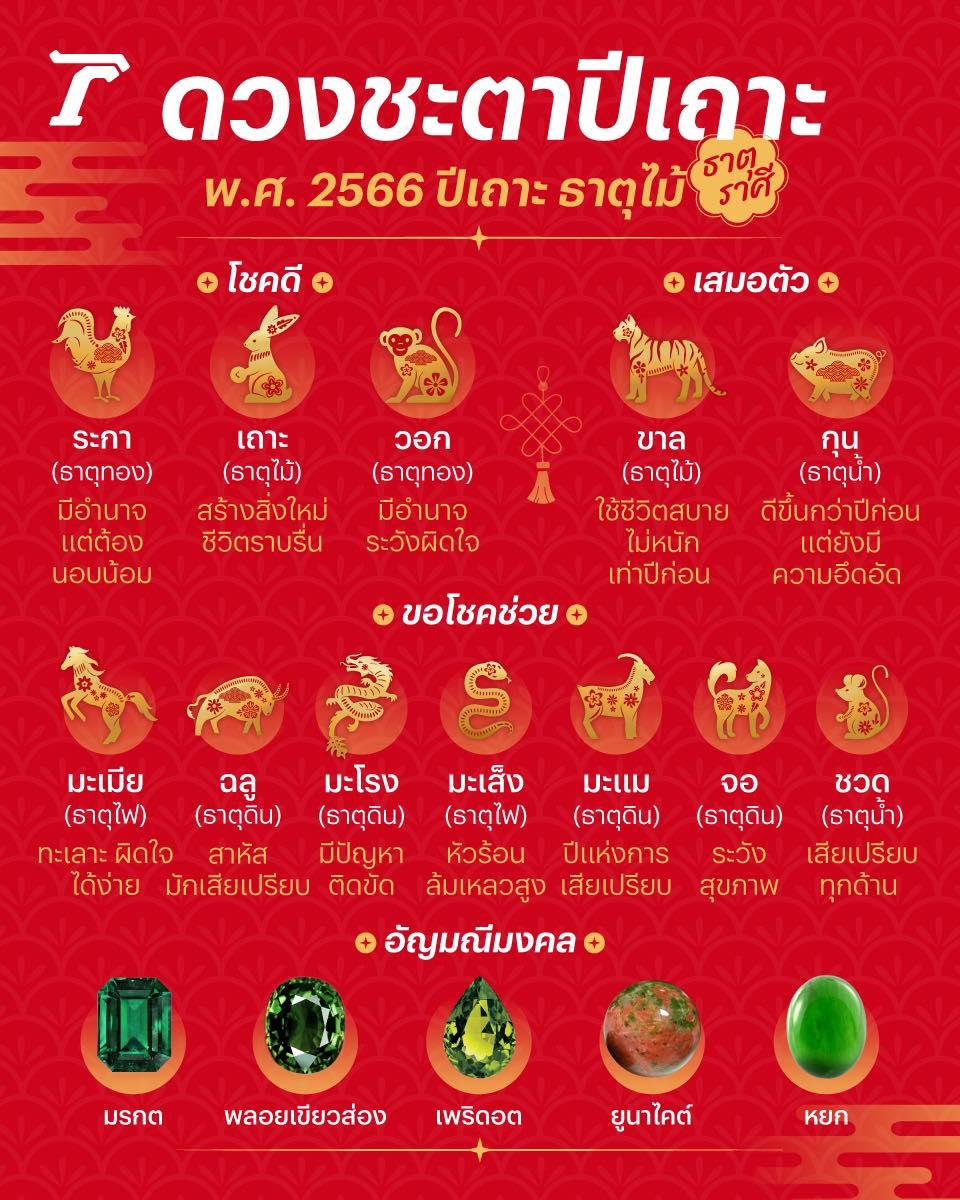 ตรุษจีน 2566 เป็นปีธาตุไม้ ตามหลักโหราศาสตร์จีน ธาตุตามราศีเกิด มีผลต่อดวงชะตาของชีวิต โดยปีนี้มี 3 ราศี ที่เข้าสู่เกณฑ์ของความโชคดี ส่วนอีก 2 ราศี ยังอยู่ในช่วงเสมอตัว