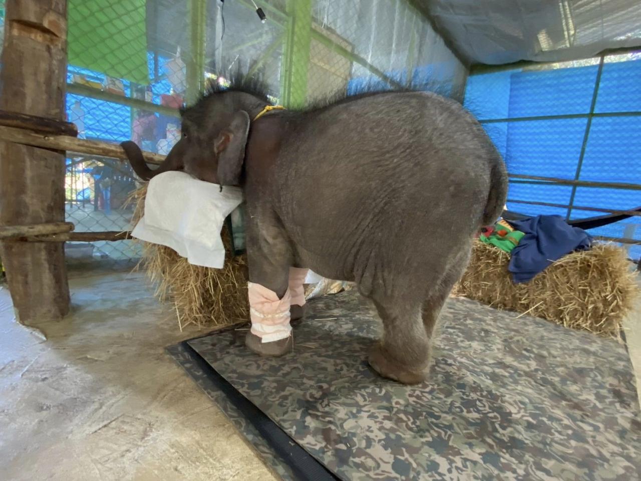 โดยพบว่า ลูกช้างป่า (ตุลา) มีอาการไม่สามารถลุกยืนได้จากการนอนในเวลากลางคืน จึงได้เข้าช่วยเหลือโดยการใช้เครนยกตัวเข้าช่วยพยุงตัวให้ยืนขึ้น หลังจากนั้นสัตวแพทย์ได้ทำการตรวจร่างกายพบว่า ขาหน้าทั้ง 2 ข้างมีอาการอ่อนแรง บวม ข้อเท้าขาหน้าทั้งสองมีการงอ ไม่ขยับเดิน จึงได้ทำการให้ยาลดปวด ลดอักเสบ และพันขาลดการปวดการอักเสบ โดยตลอดทั้งวันพบว่า ลูกช้างป่าไม่สามารถใช้ขาช่วยพยุงตัวให้ยืนได้ จึงได้ทำการให้นอนพัก และให้เจ้าหน้าที่ติดตามอาการอย่างใกล้ชิดตลอด 24 ชั่วโมง