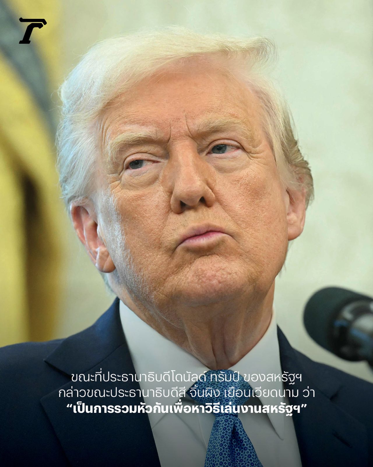 ขณะที่ประธานาธิบดีโดนัลด์ ทรัมป์ ได้สัมภาษณ์กับสื่อที่ทำเนียบขาว ในช่วงเวลาที่ประธานาธิบดีสี จิ้นผิง เยือนเวียดนาม ว่าตนไม่กล่าวโทษจีนและเวียดนาม โดยระบุว่า “นี่เป็นการประชุมที่น่ารัก เป็นการประชุมแบบที่ว่า พวกเขากำลังหาคำตอบ ว่าจะหาวิธีเล่นงานสหรัฐฯ ได้อย่างไร?”