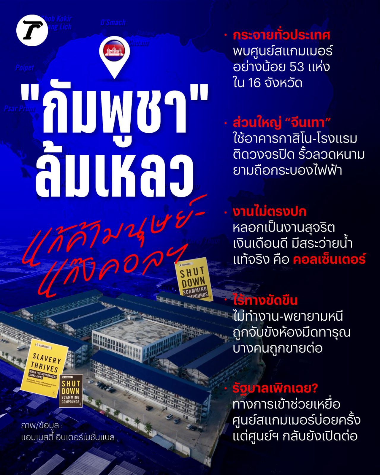 วันนี้ (26 มิ.ย. 2568) แอมเนสตี้ อินเตอร์เนชั่นแนล เผยแพร่รายงานฉบับใหม่ว่า รัฐบาลกัมพูชากำลังเพิกเฉยต่อการละเมิดสิทธิมนุษยชนสารพัดรูปแบบที่กระทำโดยกลุ่มอาชญากรรมในศูนย์สแกมเมอร์อย่างน้อย 53 แห่ง ใน 16 จาก 25 จังหวัดทั่วประเทศ